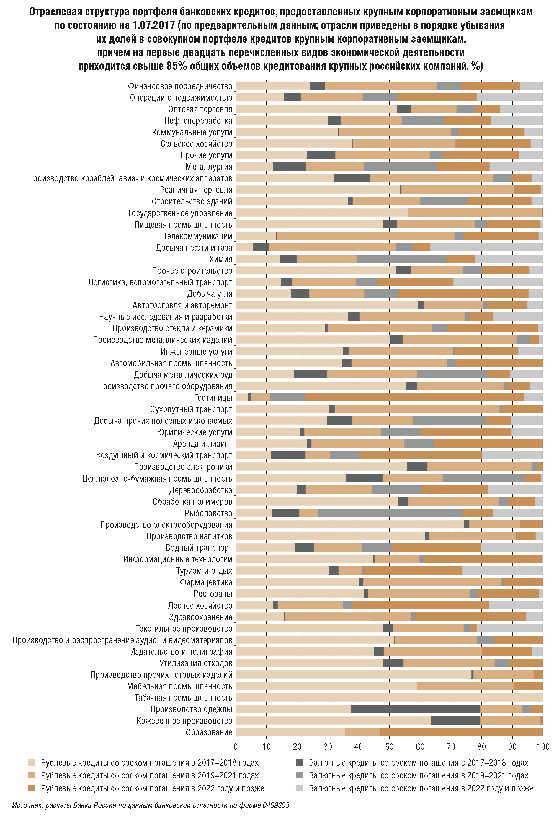 Банк России учитывает структурные особенности российской экономики, а также внутренние и внешние вызовы и ограничения при проведении денежно-кредитной политики и координирует свои действия с политикой Правительства Российской Федерации, направленной на решение структурных проблем в рамках согласованной системы государственного стратегического и оперативного планирования. При этом постепенно должна возрастать роль механизмов, способствующих объединению усилий государства и бизнеса в решении комплексных задач, в том числе применения инструментов частно-государственного партнерства в реализации приоритетных для экономического развития проектов и программ. Одновременно необходимо сохранить устойчивость экономики и не допустить накопления дисбалансов в финансовом и реальном секторах, в частности чрезмерного увеличения банковского кредитования и долговой нагрузки (которая высока в ряде секторов). Поэтому заслуживают внимания рыночные механизмы и налоговые, бюджетные, регуляторные инструменты для создания стимулов к перераспределению уже созданных денежных ресурсов и накоплений между сегментами экономики, а также к повышению эффективности их использования. Этому также будут способствовать постепенное снижение ключевой ставки Банком России по мере стабилизации инфляции вблизи 4% и предсказуемость финансовых условий в экономике. В этих условиях будет происходить выравнивание доступности кредитования для различных секторов экономики, потребность в специализированных инструментах рефинансирования и задолженность по ним будут постепенно снижаться. В сентябре 2017 г. Банк России одобрил стратегию поэтапного выхода из применения специализированных инструментов рефинансирования. Она нацелена на постепенное замещение льготного кредитования рыночными механизмами. Одним из основных принципов стратегии является сохранение условий по ранее предоставленным кредитам. Процесс реализации стратегии будет поэтапным и займет несколько лет. Скорость сворачивания Банком России мер косвенной поддержки будет зависеть от экономической ситуации, в том числе повышения доступности рыночных источников финансирования. Соответствующие сроки выхода из применения специализированных инструментов будут определяться и при необходимости уточняться на основе среднесрочных сценариев экономического развития, разрабатываемых Банком России. По мере реализации этого процесса будет возрастать роль бюджетных стимулов и механизмов, которые, в частности, уже используются в рамках поддержки кредитования производителей сельскохозяйственной продукции, организаций-экспортеров, малого и среднего предпринимательства*(4).