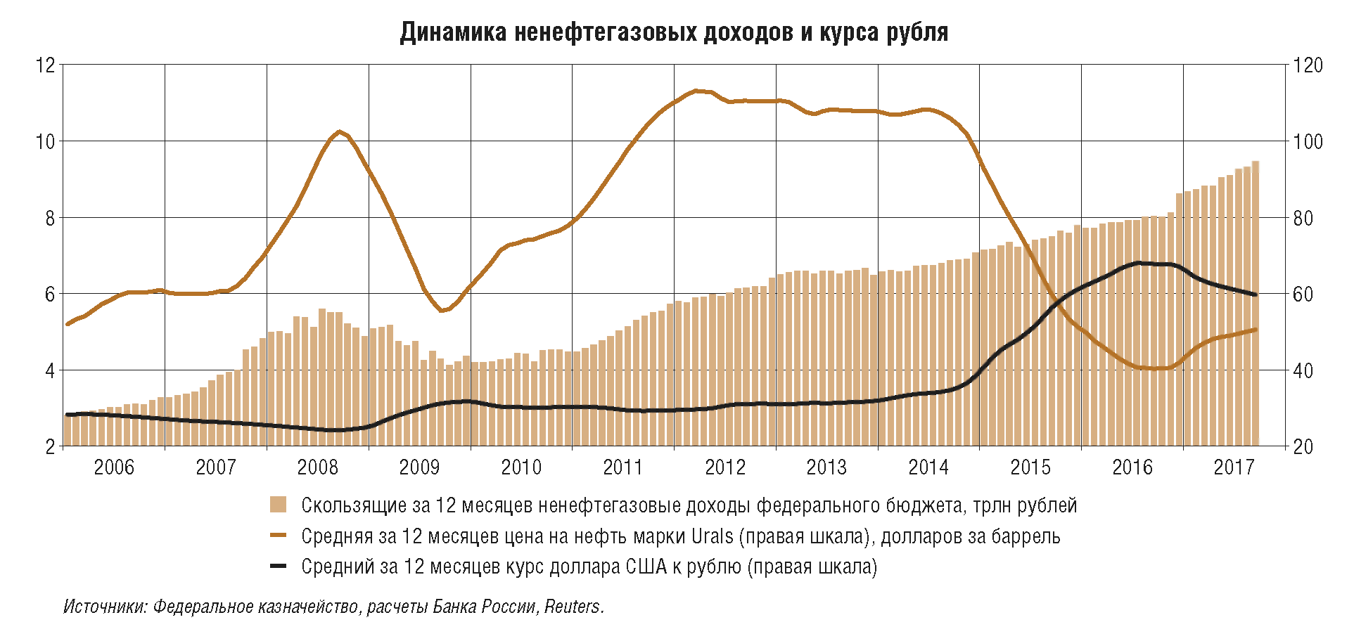 Применение бюджетного правила, действующего с начала 2017 г., в среднесрочной перспективе создаст условия для снижения зависимости российской экономики, а также государственных финансов от фазы цикла на мировом нефтяном рынке. В сочетании с режимом таргетирования инфляции это ограничит влияние внешних условий на реальный валютный курс и конкурентоспособность российских товаров и услуг. Сохранение консервативного подхода к формированию государственных финансов в рамках применения бюджетного правила, а также проведение взвешенной денежно-кредитной политики являются ключевыми факторами общей макроэкономической стабильности. Банк России также будет оценивать возможность возобновления покупок иностранной валюты на валютном рынке для пополнения международных резервов до уровня 500 млрд долл. США. Более высокий уровень международных резервов, чем предусматривают стандартные показатели достаточности резервов, желателен для устойчивого функционирования российской экономики в условиях изменчивой внешнеэкономической конъюнктуры и ограничения рисков для финансовой стабильности в случае реализации внешних шоков. Банк России будет проводить указанные операции в такой форме, чтобы не оказывать существенного влияния на внутренний финансовый рынок и не препятствовать достижению цели по ценовой стабильности. Проведение данных операций не противоречит режиму плавающего валютного курса, которого придерживается Банк России, учитывая, что поддержание того или иного уровня валютного курса или скорости его изменения не является целью данных операций. Напротив, параметры операций в целях пополнения резервов определяются таким образом, чтобы не оказывать значимого воздействия на динамику валютного курса.