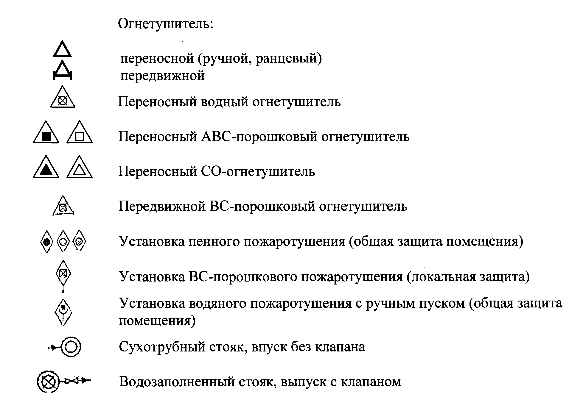 з) условные обозначения при составлении графической части планов и карточек тушения пожаров