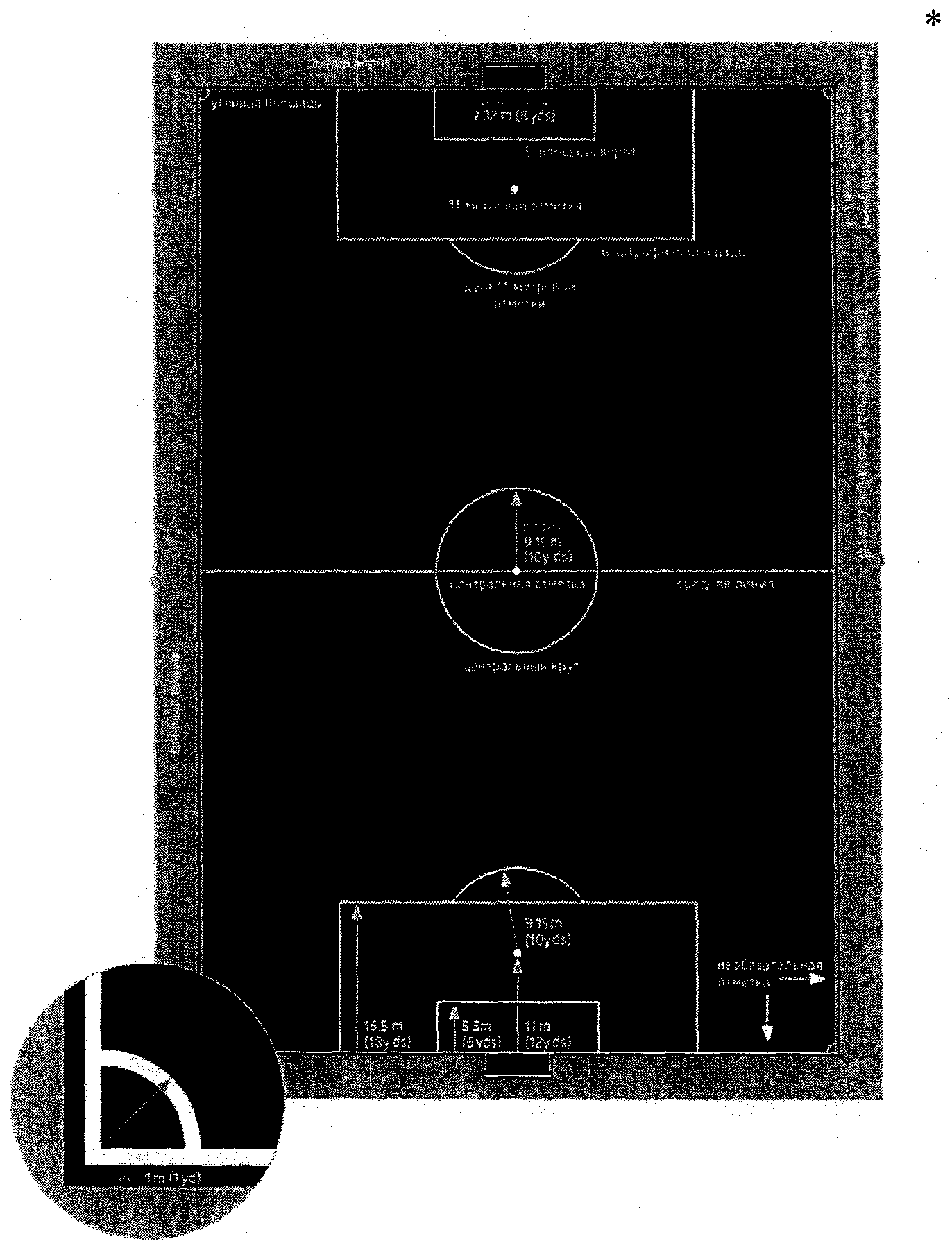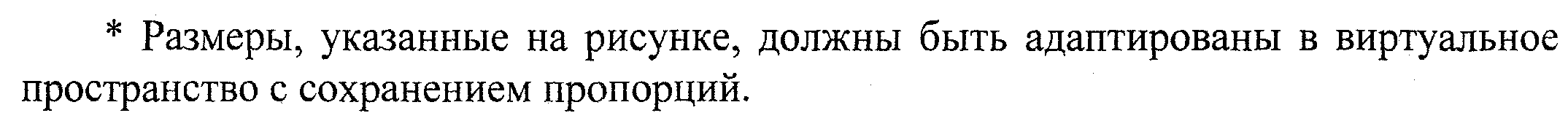 Размеры футбольного поля в виртуальном пространстве и разметки, наносимой на него, установленные для вида спорта "футбол", должны быть пропорционально адаптированы в футбольный симулятор.