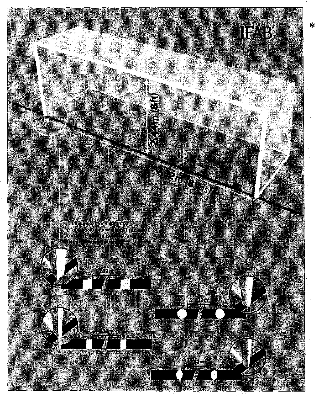 Размеры ворот, располагающихся на футбольном поле в виртуальном пространстве, установленные для вида спорта "футбол", должны быть пропорционально адаптированы в футбольный симулятор.