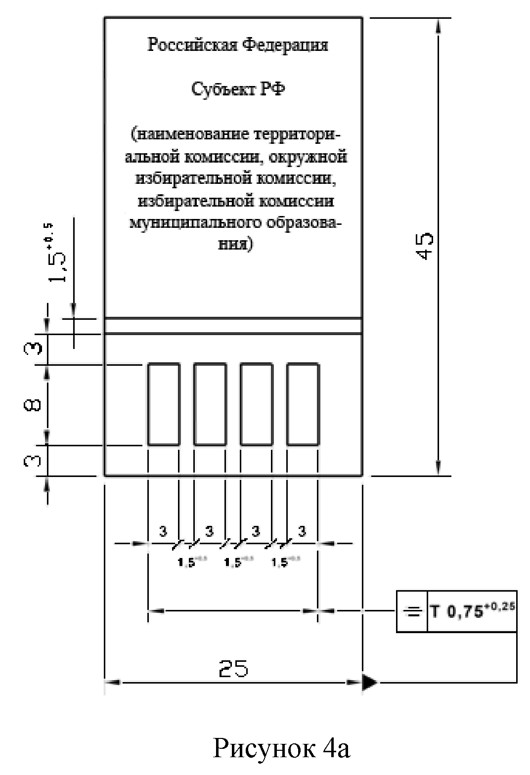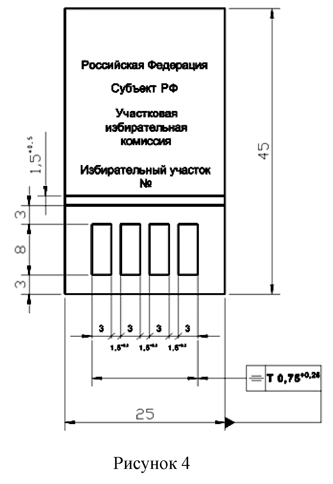3) прямоугольной печатью с номером избирательного участка, участка референдума, полученной в вышестоящей комиссии (описание и образец печати приведены в приложении N 1 к настоящей Инструкции);