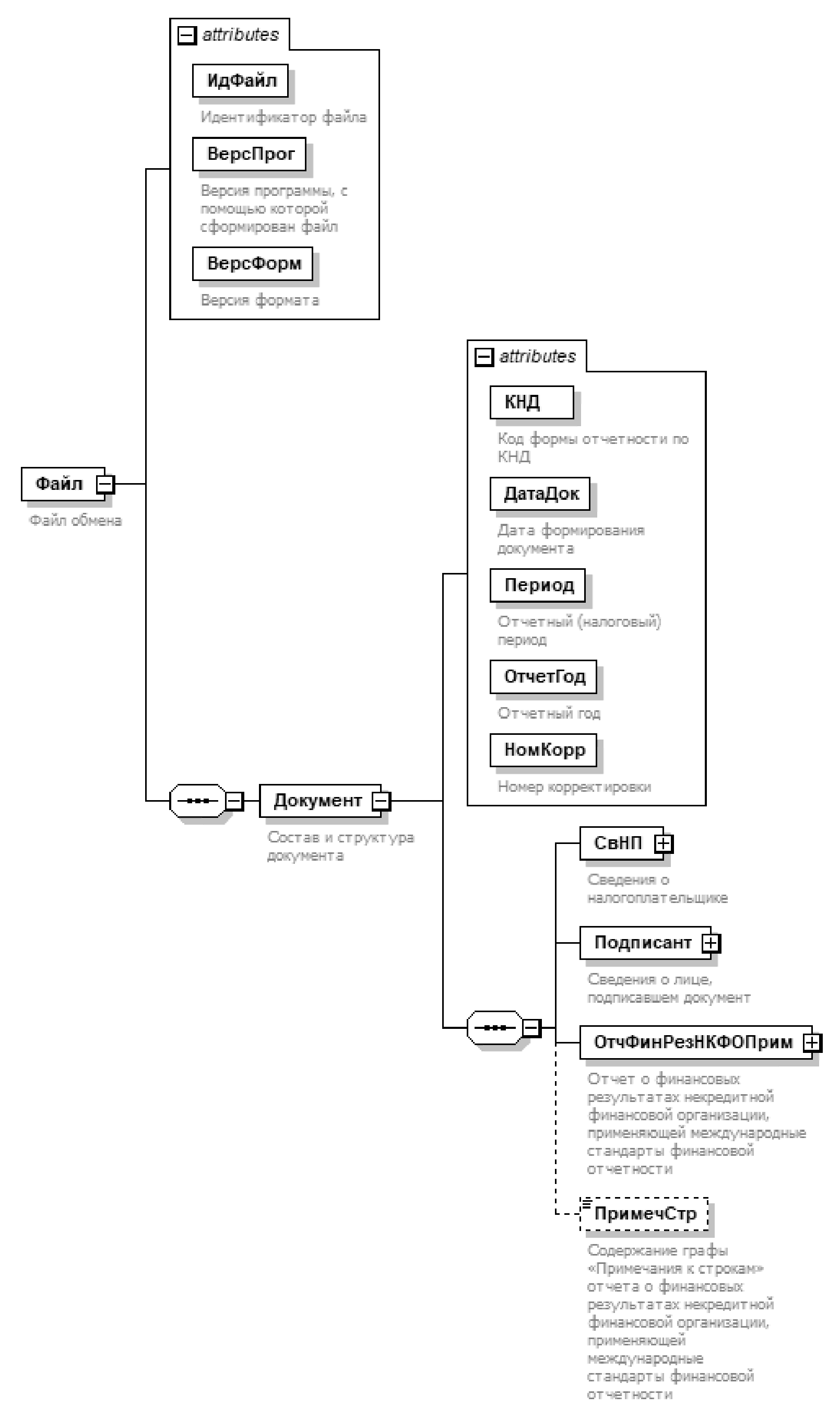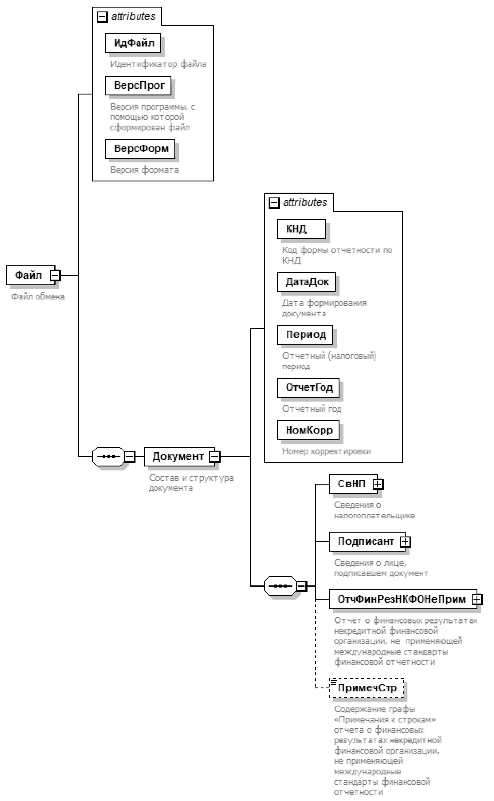 | Отчет о финансовых результатах некредитной финансовой организации, применяющей международные стандарты финансовой отчетности | ОтчФинРезНКФОПрим | С | О | Состав элемента представлен в таблице 4.6 | |