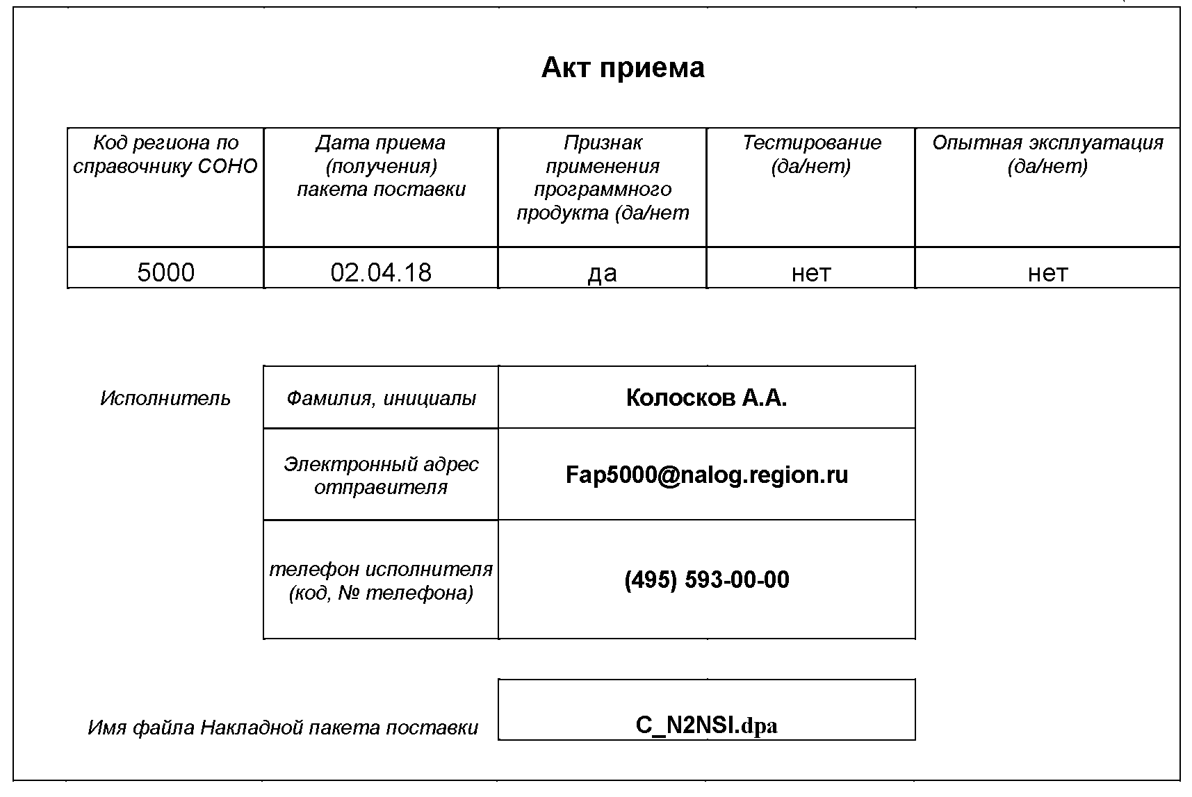 - акт приема (заполняется Получателем при приеме пакета поставки).