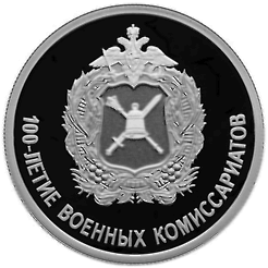 - серебряную номиналом 1 рубль "100-летие военных комиссариатов";