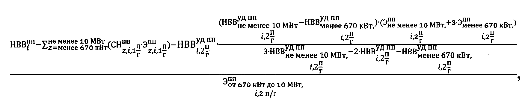 а) для подгрупп «от 670 кВт до 10 МВт» и «не менее 10 МВт» на едином уровне по формуле (57):