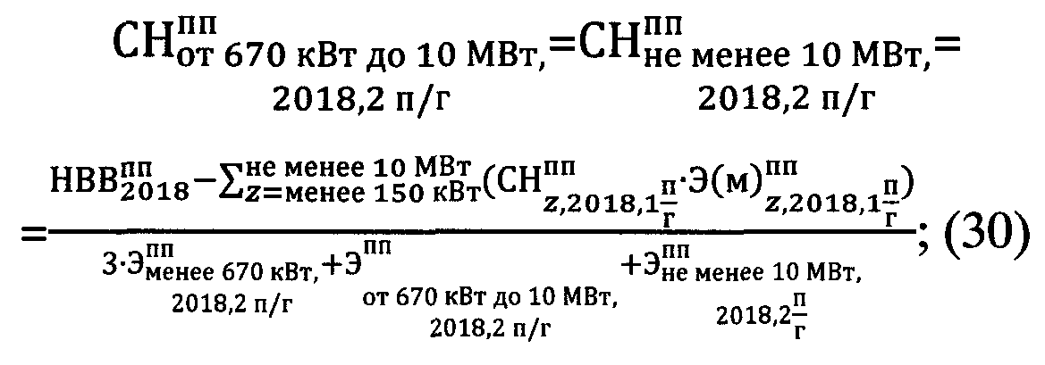 а) для подгрупп «от 670 кВт до 10 МВт» и «не менее 10 МВт» на едином уровне по формуле (30):