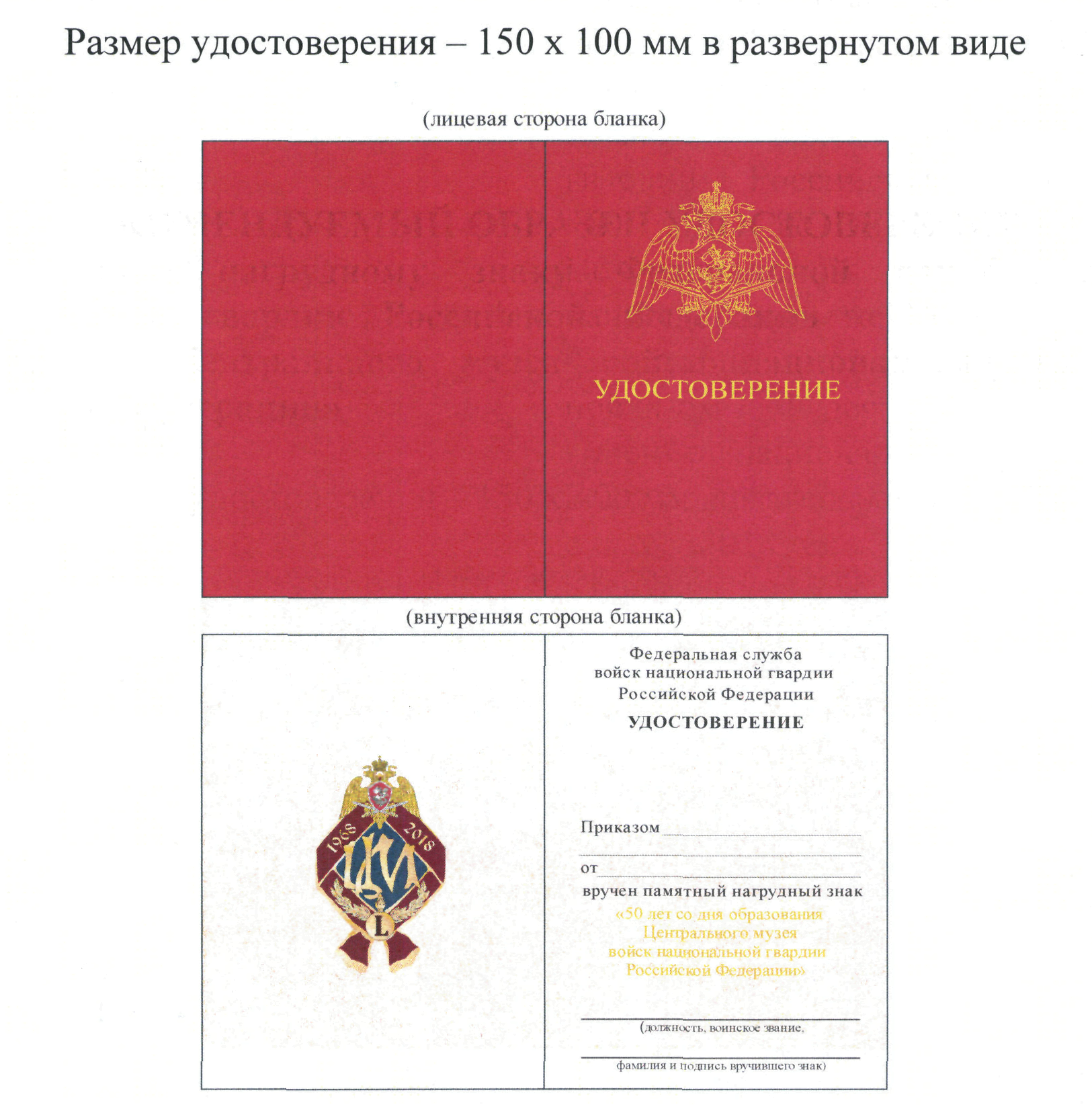 к памятному нагрудному знаку Федеральной службы войск национальной гвардии Российской Федерации «50 лет со дня образования Центрального музея войск национальной гвардии Российской Федерации»