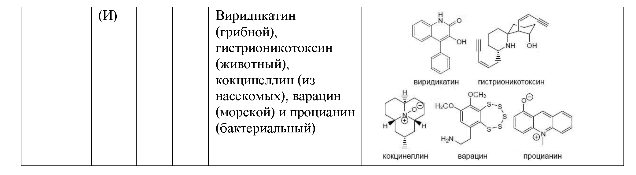 «(3) Алкалоиды насекомых: Кокцинеллин* семиточечной божьей коровки (Subcoccinella septempunctata); 2-изопропил-3-метоксипиразин (из многоцветной азиатской божьей коровки (Harmonia axyridis)); данаидон (феромон бабочки "African Monarch"); гломерин (из европейской многоножки); эпилахнен (из мексиканской божьей коровки); полиазамакролид 24-точечной божьей коровки (Subcoccinella vigintiquatuorpunctata).»;
