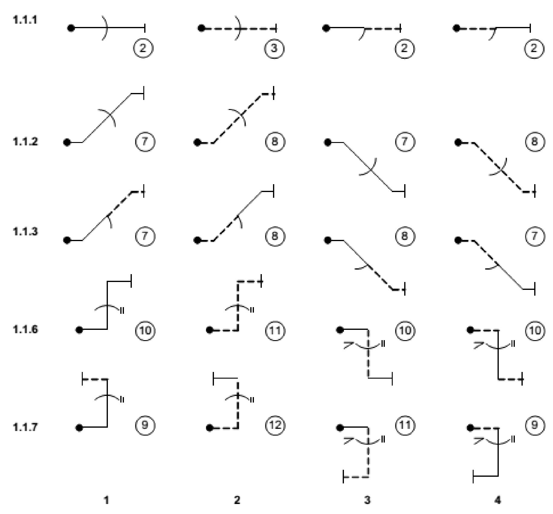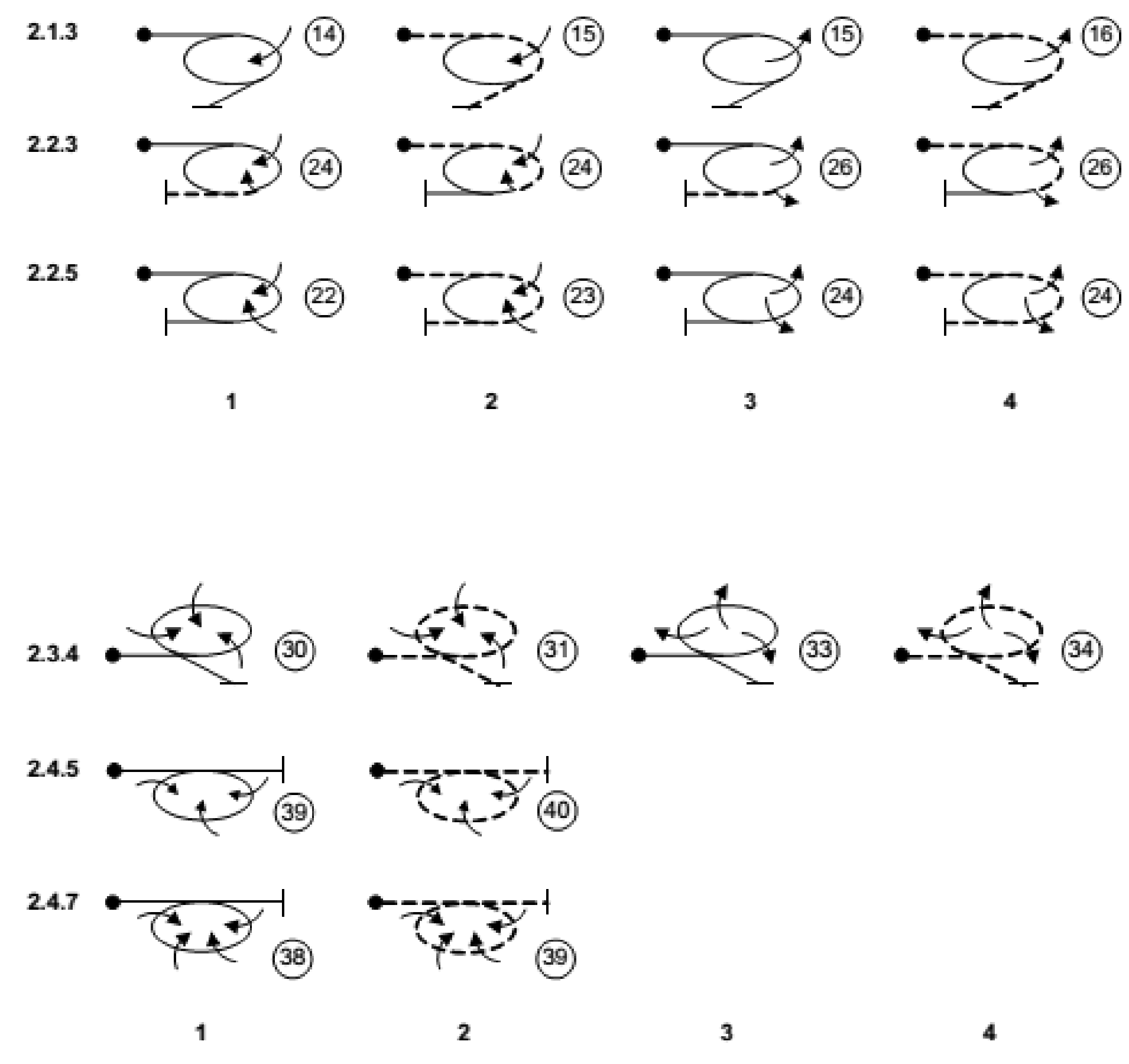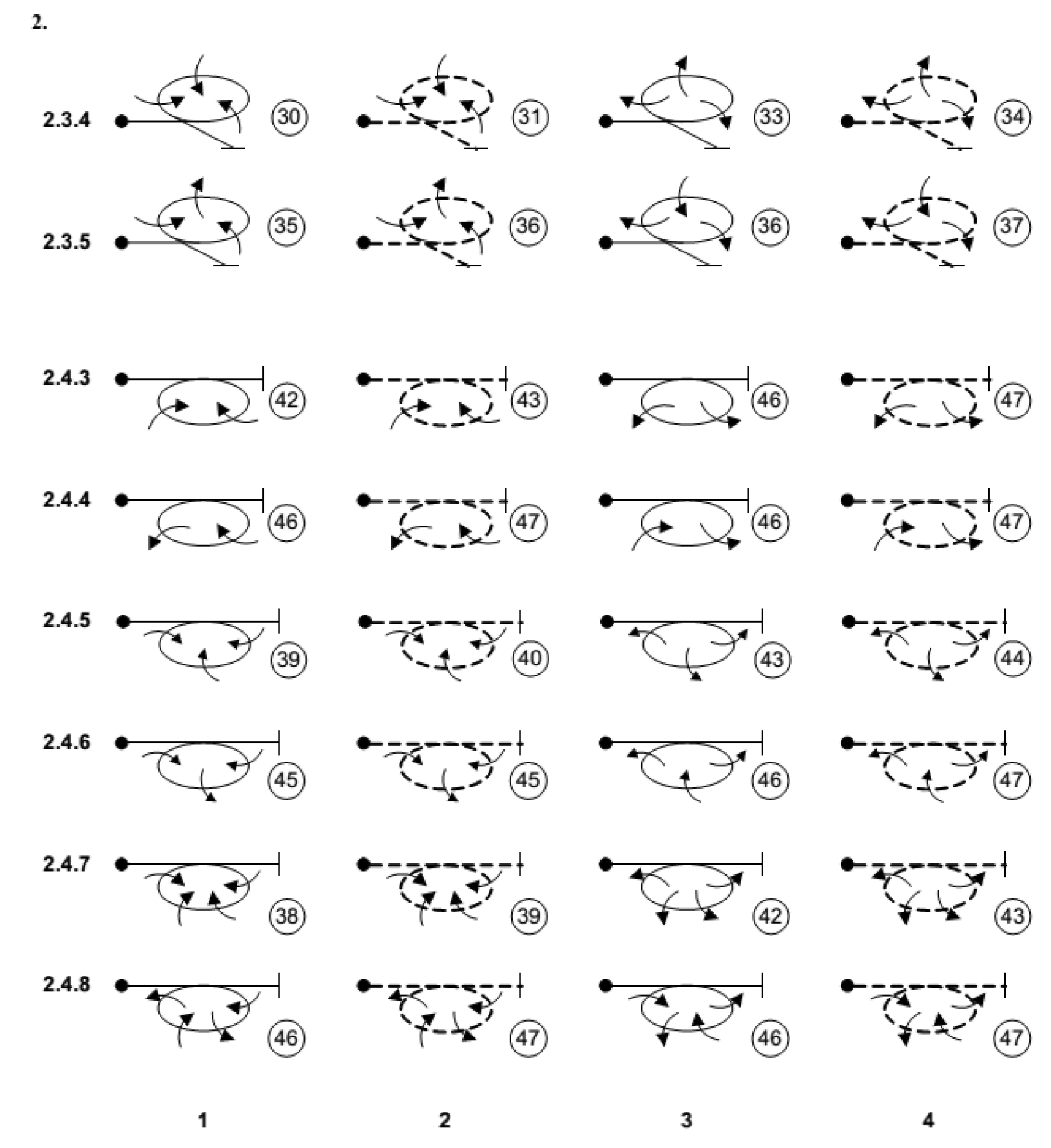 для произвольных неизвестных комплексов - обязательные фигуры обозначаются буквами в соответствии с очередностью их представления на брифинге (A-J), фигуры для связки - буквой L и цифрой от 1 до 4.