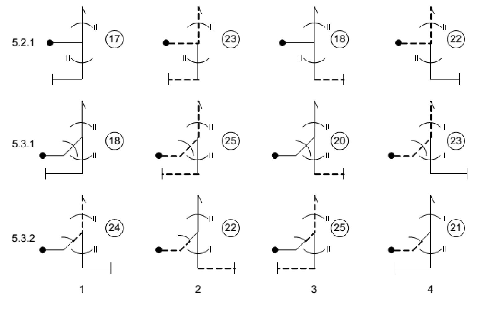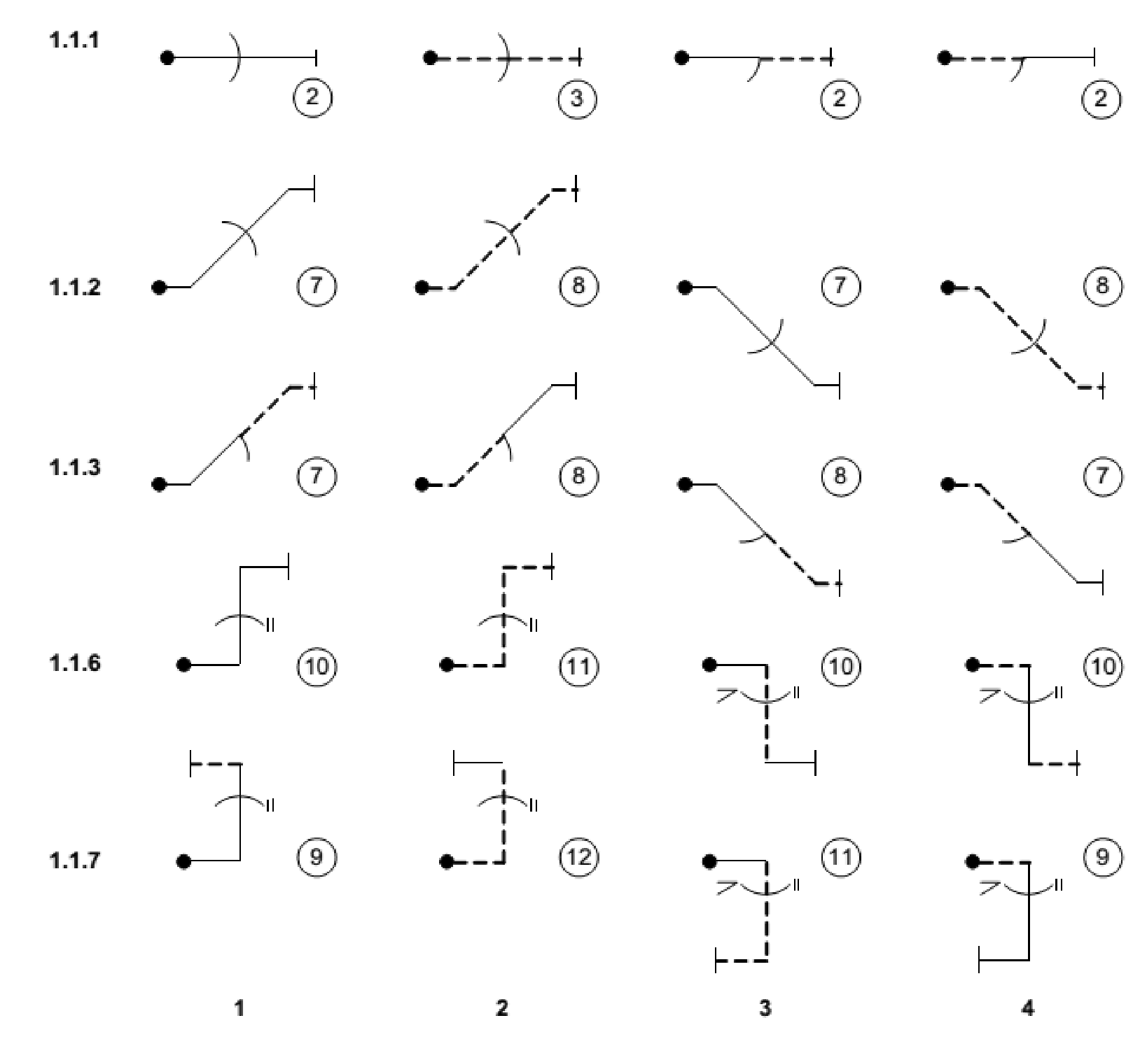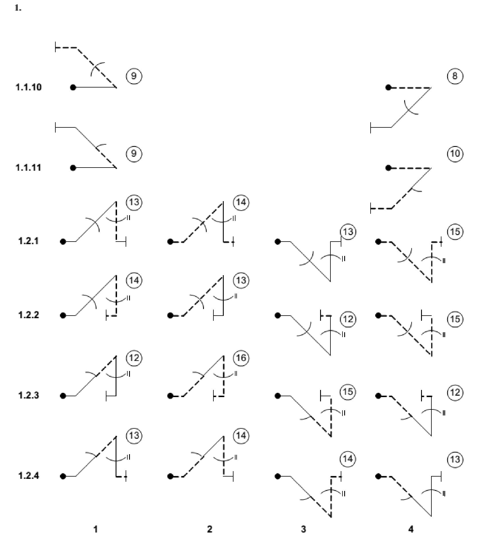 для произвольных неизвестных комплексов - обязательные фигуры обозначаются буквами в соответствии с очередностью их представления на брифинге (A-J), фигуры для связки - буквой L и цифрой от 1 до 4.