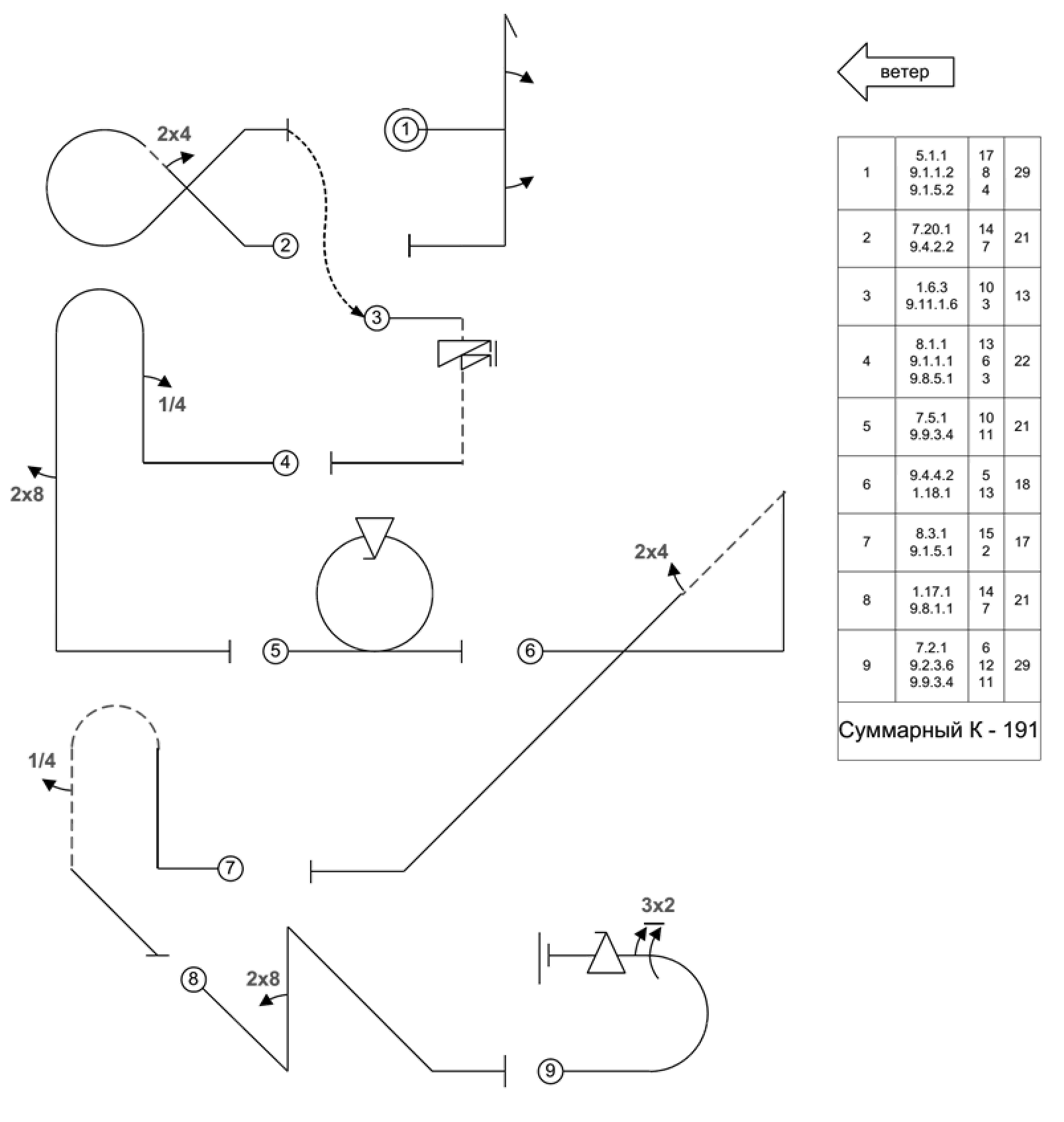 3. В форме "С" должен быть показан весь комплекс, который выполняется, если ветер дует слева.