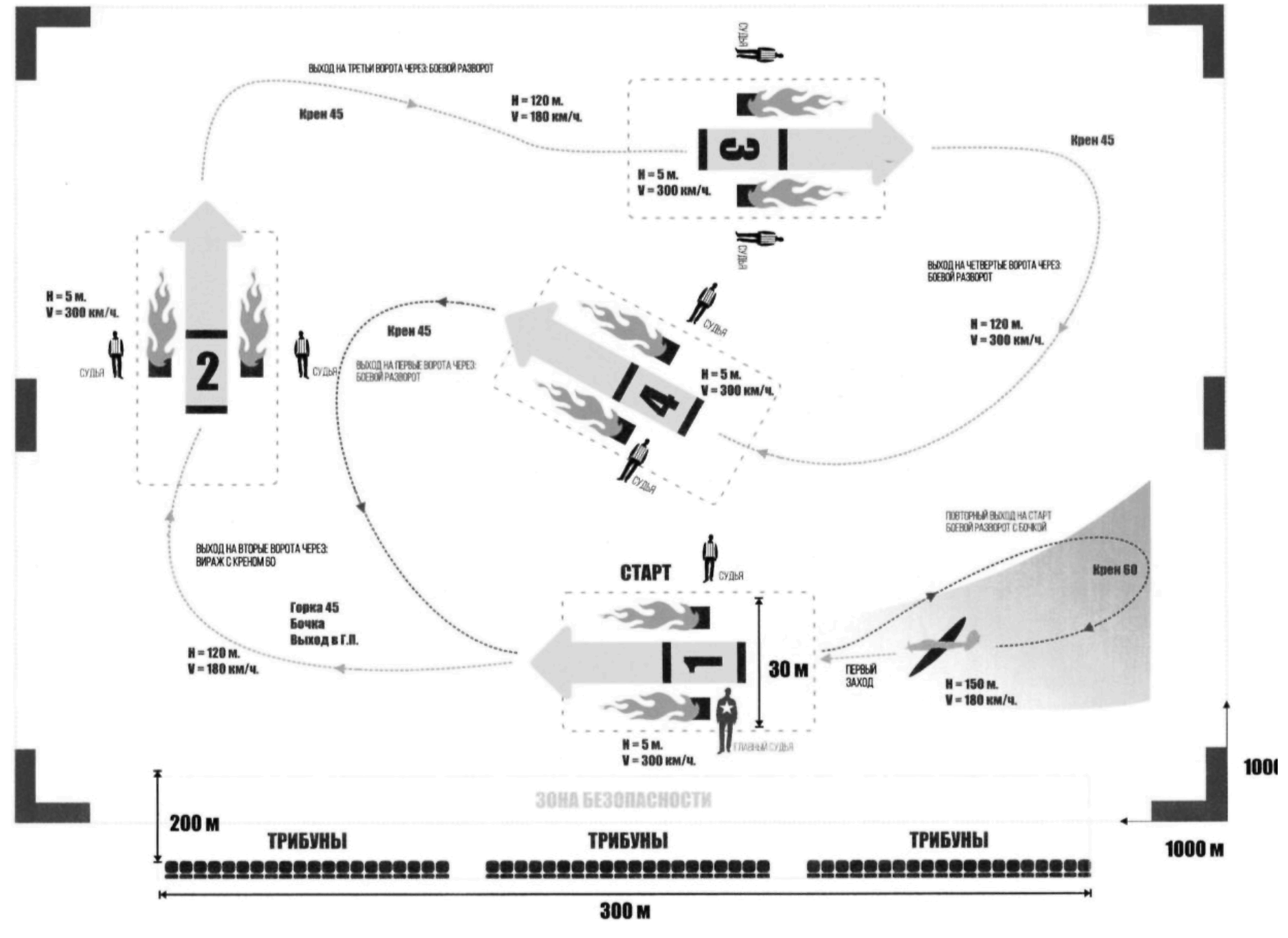 | Предельно малая высота | Минимально безопасная высота пилотирования и прохождения воздушных ворот, обуславливаемая размером и рельефом пилотажного квадрата, типом используемых для гонок самолетов и уровнем квалификации участников |