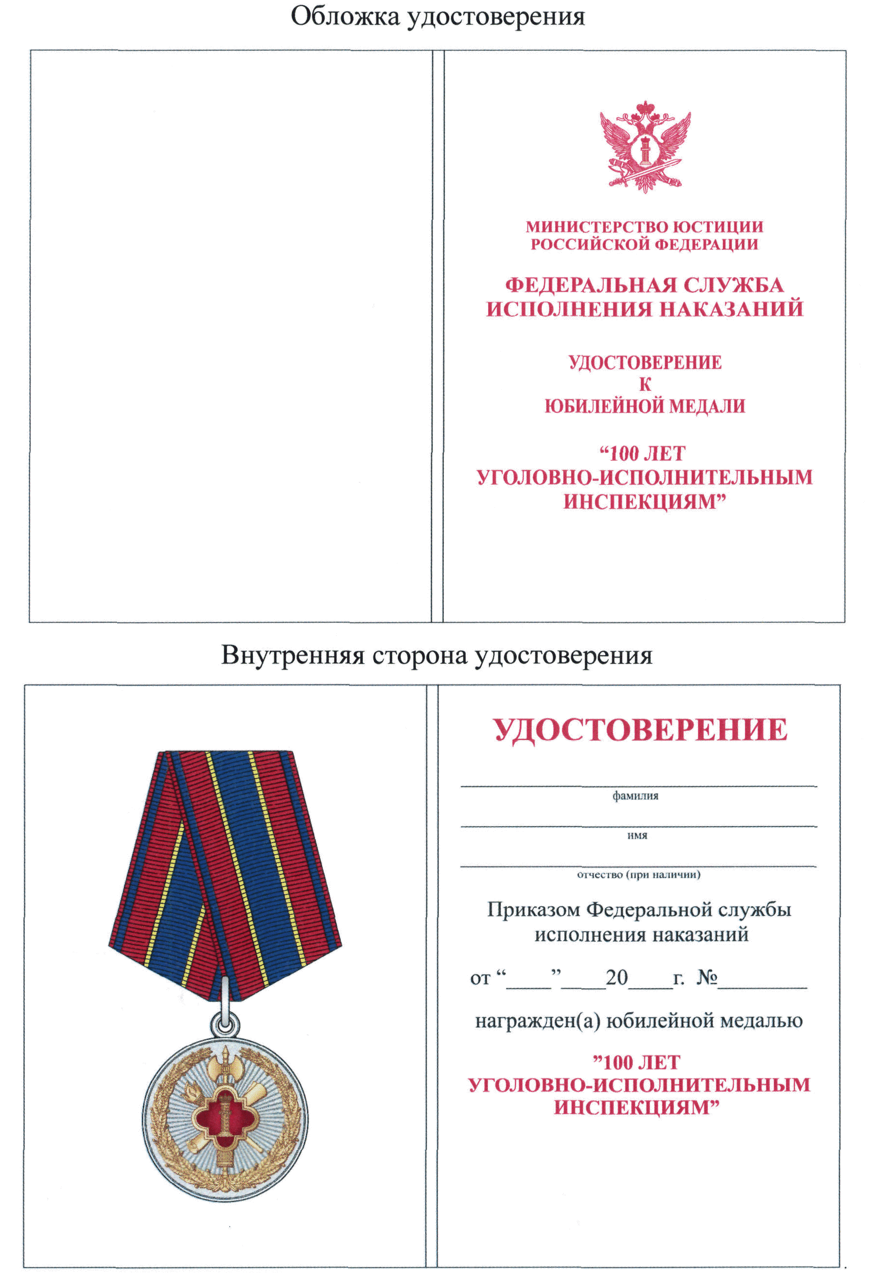 к юбилейной медали "100 лет уголовно-исполнительным инспекциям"