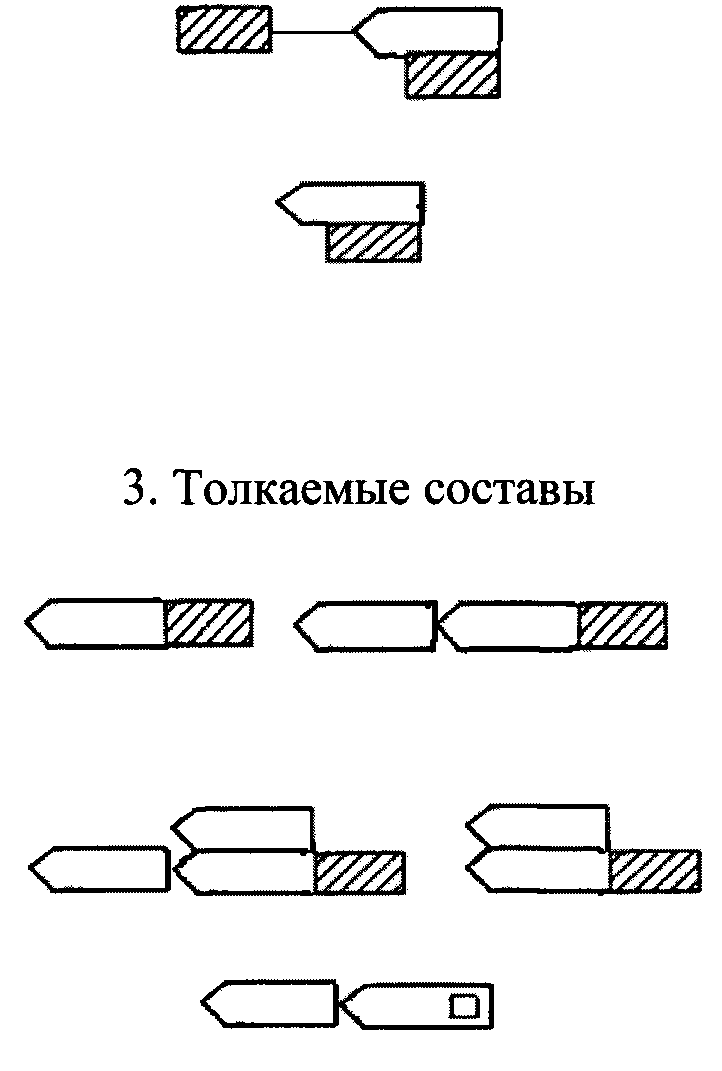 2. Толкаемые и буксируемые составы должны осуществлять движение в соответствии с типовыми схемами формирования составов, указанными в приложении к настоящим Правилам.
