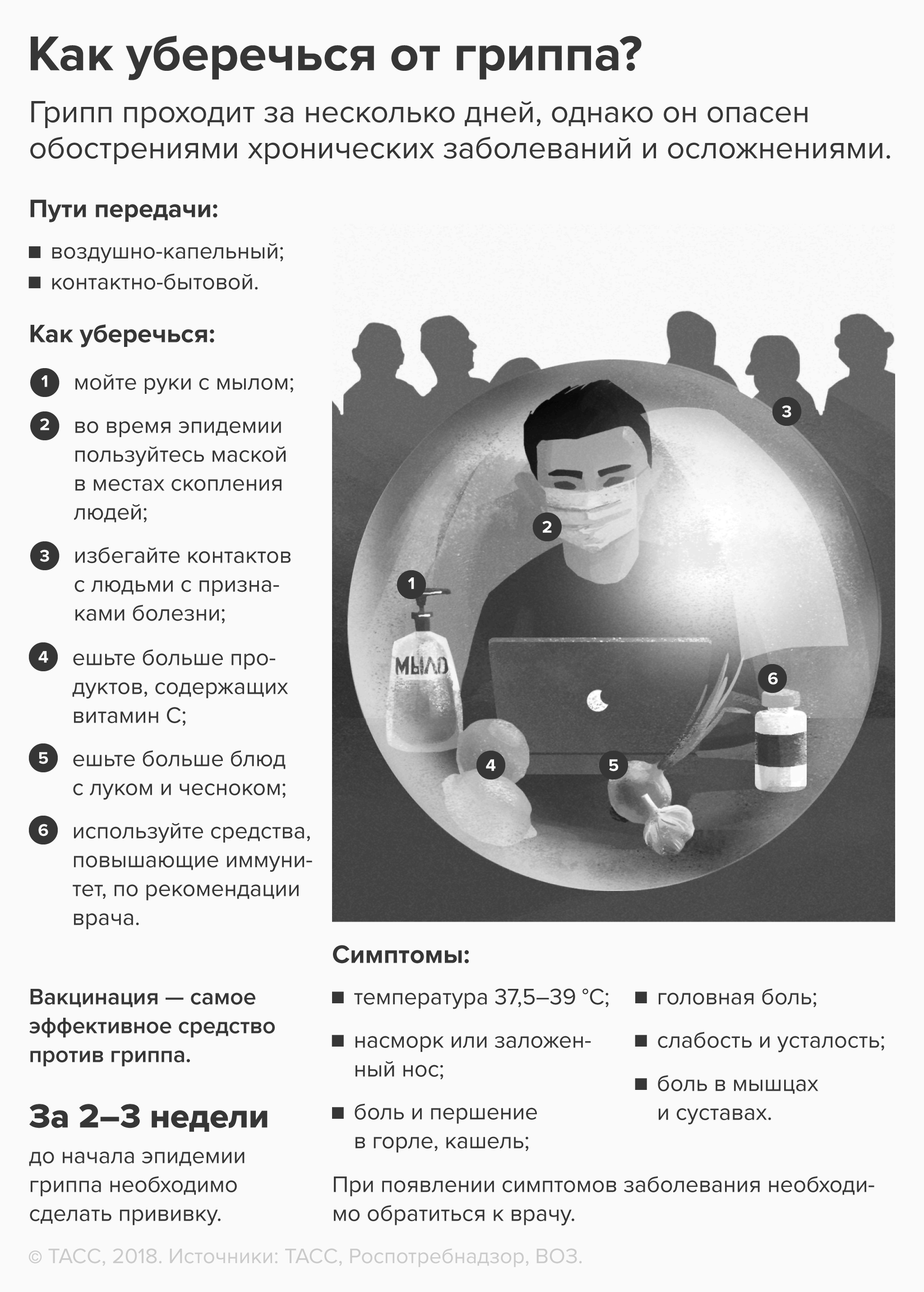 Сделайте прививку против гриппа до начала эпидемического сезона.