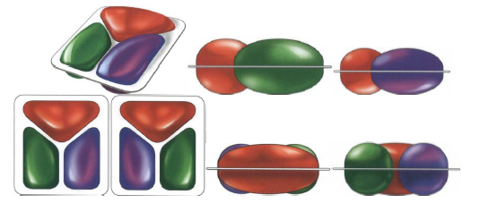 сочетание цветов, т.е. взаимное расположение в пространстве элементов красного, зеленого и фиолетового цветов, соответственно сверху, слева и справа.