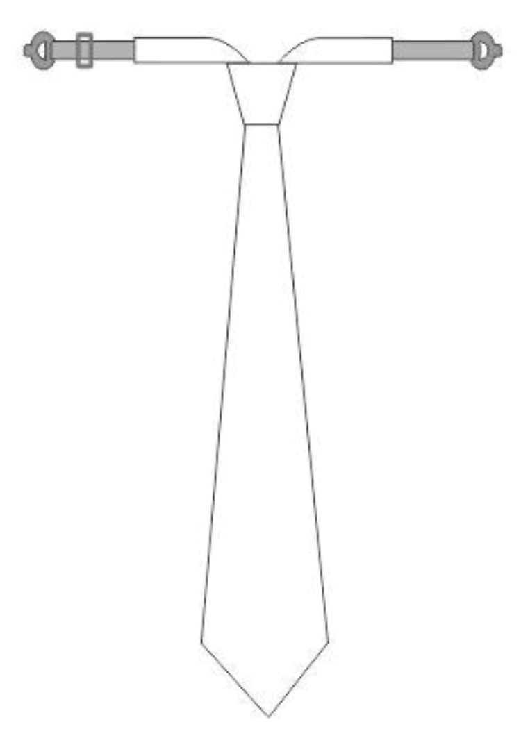 1.4. Галстук мужской (рисунок 4) состоит из основной части, заканчивающейся углом, и сформированного узла с застежкой для крепления галстука под воротник рубашки. Шейная лента состоит из основной детали, эластичной тесьмы и металлической фурнитуры.