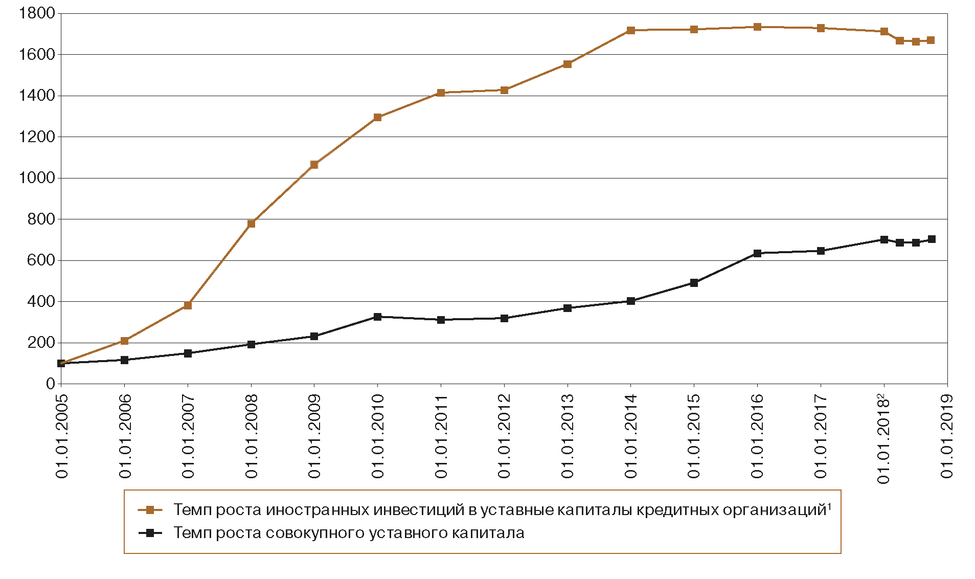 1 Начиная с 01.01.2013 в таблице приведены данные по оплаченному уставному капиталу (с учетом завершенных по состоянию на 01.10.2018 эмиссий кредитных организаций в форме акционерного общества), до 01.01.2013 - по зарегистрированному уставному капиталу.