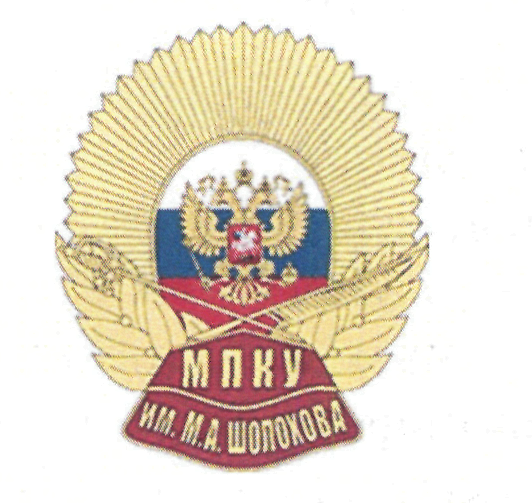 Нагрудный знак отличия за окончание федерального государственного казенного общеобразовательного учреждения "Московское президентское кадетское училище имени М.А. Шолохова войск национальной гвардии Российской Федерации"1 представляет собой основу из полукруглого "кадетского сияния", опирающегося на лавровые ветви и скрещенные по диагонали перо и шпагу, рукоятью вверх. В основании нагрудного знака помещена краповая лента с надписью в две строки "МПКУ им. М.А. Шолохова". Внутри "кадетского сияния" помещен фрагмент штандарта Президента Российской Федерации.