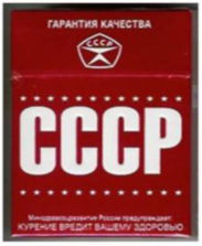Также в средней части прямоугольника помещены в две горизонтальные линии стилизованные изображения пятиконечных звезд белого цвета, между которыми находится выполненная стандартным жирным шрифтом крупными заглавными буквами русского алфавита белого цвета аббревиатура "СССР" - буквенное сокращение названия Союза Советских Социалистических Республик, существовавшего под таким названием с 1922 по 1991 годы. В нижней части прямоугольника в две строки помещены выполненные более мелким стандартным шрифтом заглавными и строчными буквами русского алфавита белого цвета словесные элементы "Минздрасоцразвития России предупреждает / КУРЕНИЕ ВРЕДИТ ВАШЕМУ ЗДОРОВЬЮ", которые являются общепринятой для табачной продукции предупредительной маркировкой о вреде потребления табачного изделия, а следовательно, не способны индивидуализировать товар конкретного производителя. Тогда как словесные элементы "ГАРАНТИЯ КАЧЕСТВА" характеризуют товар, так как представляют собой указание на высокое качество товара.