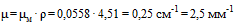 /г (среднее значение между наиболее близкими к титану (Ti) элементами кальцием (Са=0,0576) и железом (Fe=0,0540)), то значение среднего коэффициента линейного ослабления излучения (