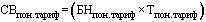 СВюр = (БН Х Т + СВпон. тариф) Х Ксб(+/-) F,