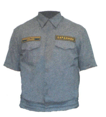 | 1.3.9. Рубашка с коротким рукавом. Сорочка мужская прямого силуэта, с центральной бортовой застежкой доверху, отложным воротником, цельнокроенным поясом. Воротник отложной с отрезной стойкой. Рукава втачные с цельнокроенными манжетами. Изготавливается из сорочечной ткани. Цвет - бежевый или синий, с эмблемой. |