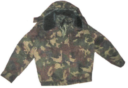 | 1.2.4. Куртка зимняя. Куртка удлиненная прямого силуэта с меховым воротником и съемным капюшоном. Ткань верха водонепроницаемая. Цвет - камуфлированный зеленый, синий. |