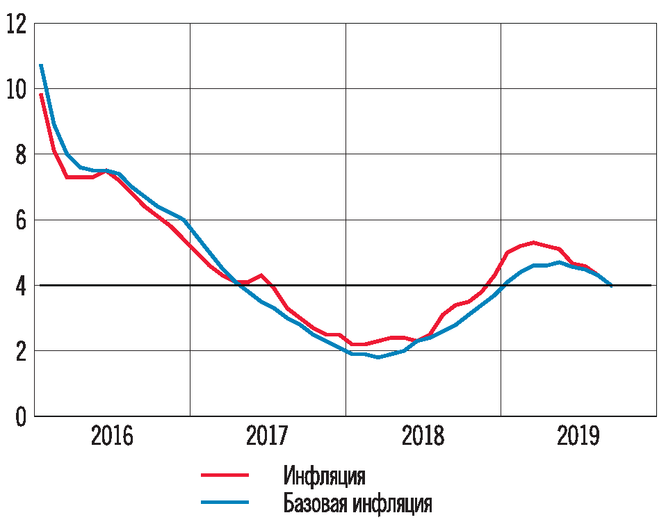 Главной целью является поддержание инфляции на стабильно низком уровне около 4%.