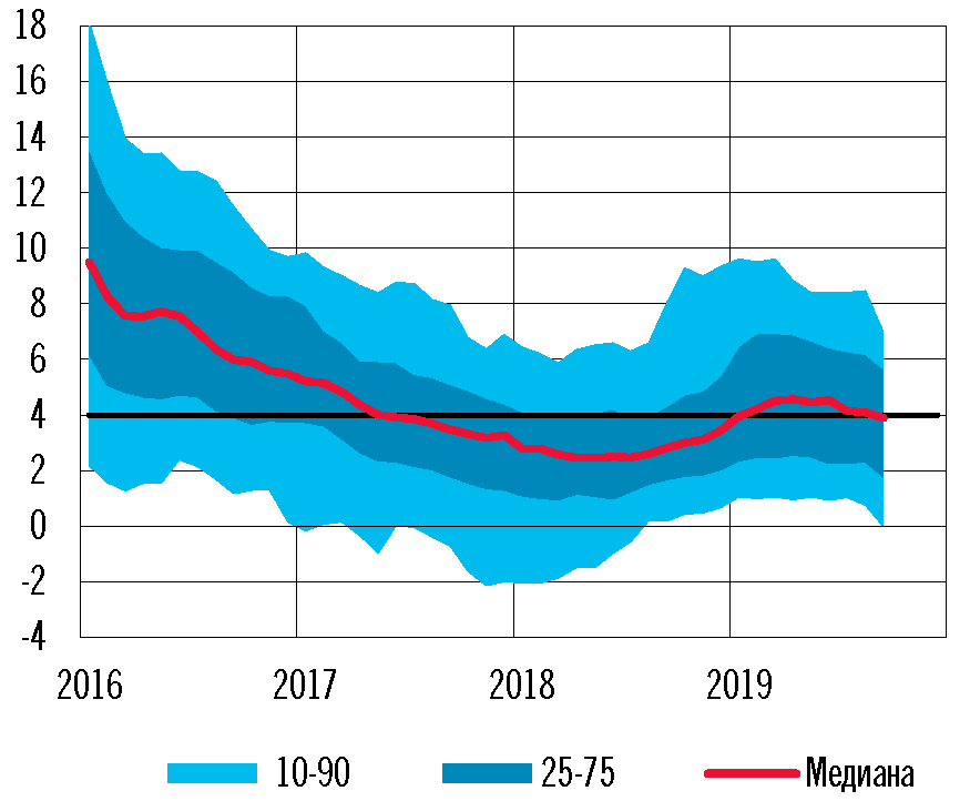 Инфляция уже достигла исторически минимальных значений за новейшую российскую историю, но при этом инфляционные ожидания участников экономических отношений все еще сохраняются на повышенном уровне и только формируется доверие к цели и мерам денежно-кредитной политики. Однако только при устойчивом сохранении инфляции вблизи 4% она может стать надежным долгосрочным ориентиром.