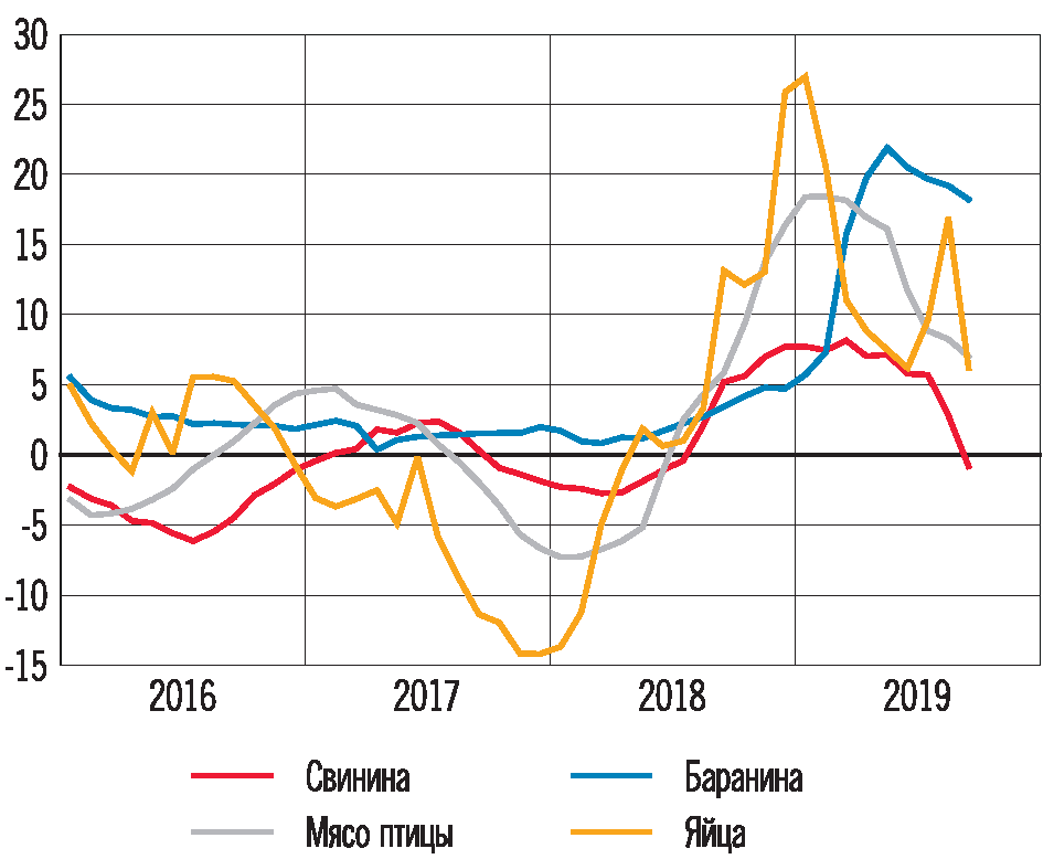 Реализация мер аграрной политики позволит снизить негативное влияние на инфляцию факторов со стороны предложения сельскохозяйственной продукции, изменения валютного курса и конъюнктуры мировых товарных рынков. Результатом станет снижение волатильности цен на продовольствие, которая по-прежнему остается максимальной среди основных компонент инфляции и оказывает существенное влияние на формирование инфляционных ожиданий.