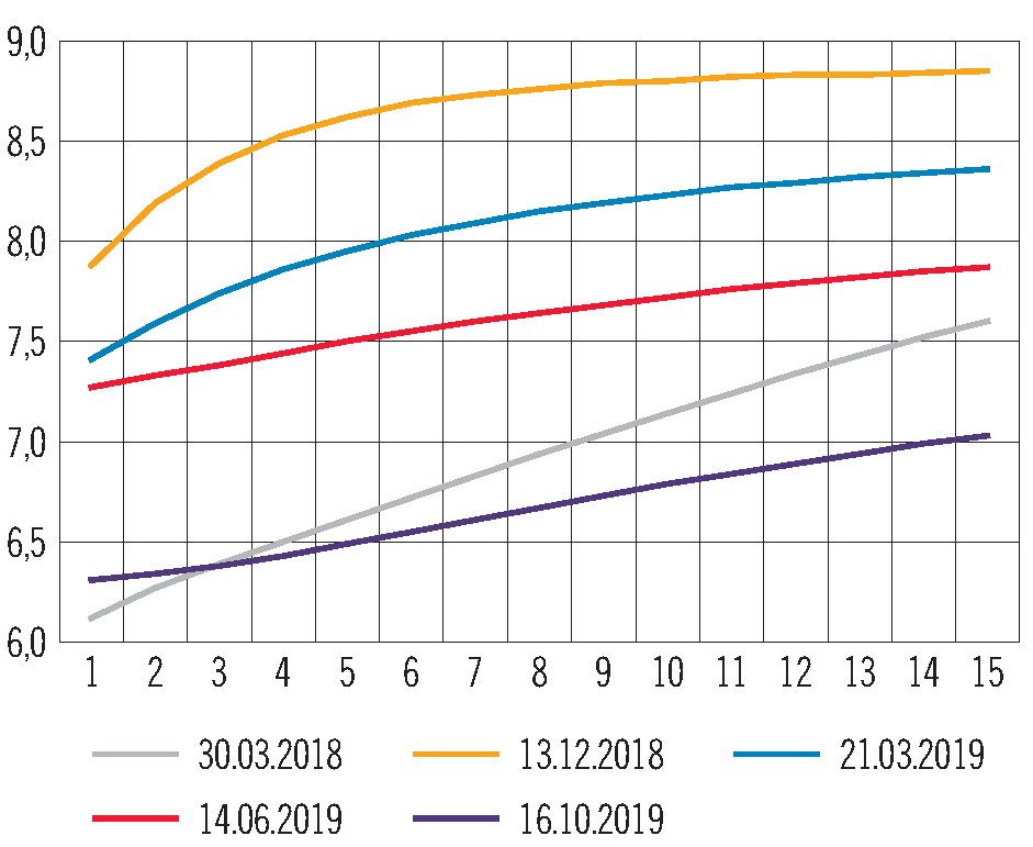 В этих условиях важную роль сыграли упреждающие решения Банка России о повышении ключевой ставки в ответ на действие целого ряда проинфляционных факторов в 2018 году. Это позволило ограничить их влияние на инфляцию, после кратковременного роста - обеспечить устойчивое замедление роста потребительских цен и уже в середине текущего года перейти к снижению ключевой ставки. Годовая инфляция приблизилась к 4% к осени 2019 г. и, по прогнозу Банка России, в дальнейшем будет находиться вблизи 4%. Банк России будет принимать все необходимые меры для закрепления годовой инфляции на цели. Наряду с решениями по ключевой ставке, одним из важнейших инструментов денежно-кредитной политики является коммуникационная политика Банка России, которая значимо влияет как на формирование процентных ставок на финансовом рынке, так и на инфляционные ожидания.