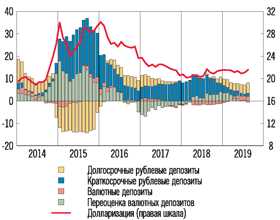 Способствуя росту доверия к национальной валюте в целом, низкая и стабильная инфляция создает условия для снижения валютизации активов и обязательств в экономике. Это, в свою очередь, снижает влияние изменения внешних условий на экономику.