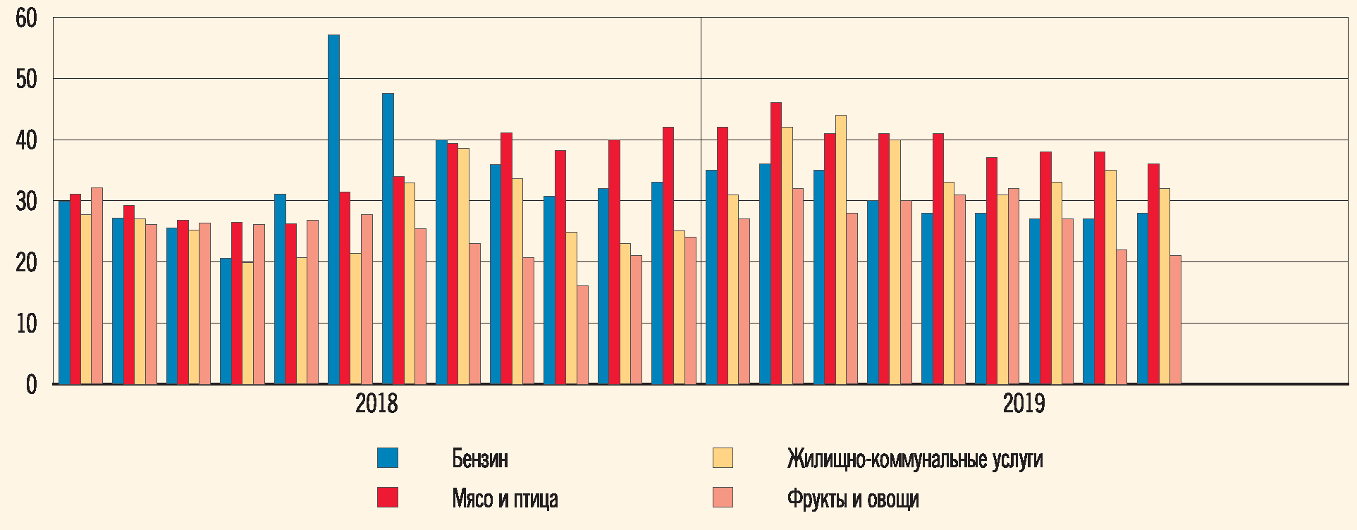 Среди основных мер государственной политики по снижению влияния немонетарных факторов на динамику цен, реализуемых на текущем этапе, можно выделить меры по совершенствованию инфраструктуры рынка аграрной продукции и продовольствия, по развитию конкуренции, в том числе на рынке моторного топлива, регулирование тарифов на услуги коммунального хозяйства (см. врезку "Влияние немонетарных факторов на инфляцию" в разделе 3).