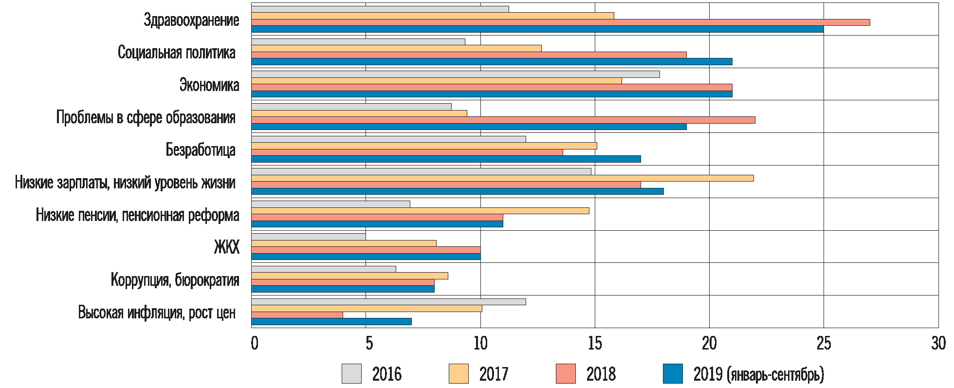 Опросы населения и компаний также указывают на важность низкой и стабильной инфляции как условия благоприятной среды для жизни и ведения бизнеса. Согласно опросам, домашние хозяйства и предприятия называют высокую инфляцию одной из проблем, ухудшающих условия жизни и деловой климат, снижающих конкурентоспособность российских товаров.