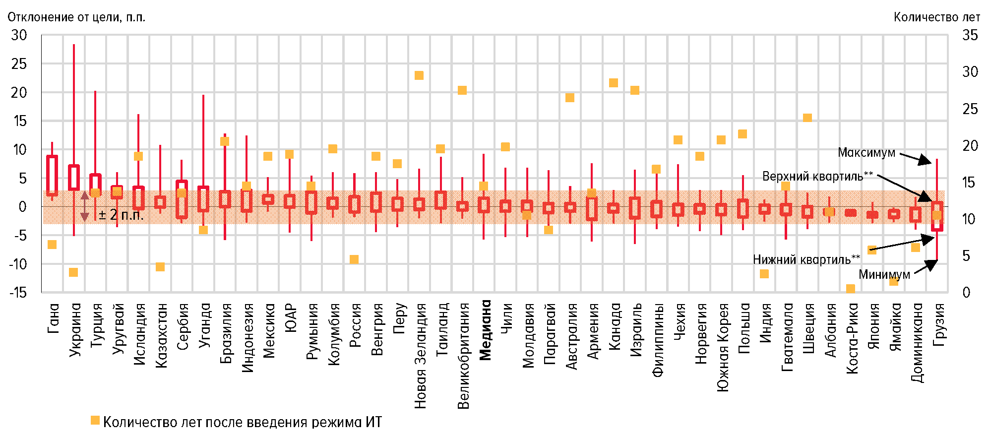 Банк России стремится поддерживать инфляцию вблизи 4% постоянно. В случае отклонения инфляции от цели Банк России будет оценивать его причины и продолжительность и исходя из этого принимать решения об использовании мер денежно-кредитной политики для возвращения инфляции к цели. Скорость возвращения инфляции к цели будет выбираться с учетом масштаба отклонения и влияния решений по ключевой ставке на экономическую активность. Кроме того, при таком выборе Банк России в случае реализации рисков для финансовой стабильности будет учитывать устойчивость организаций финансового сектора и финансовую стабильность.