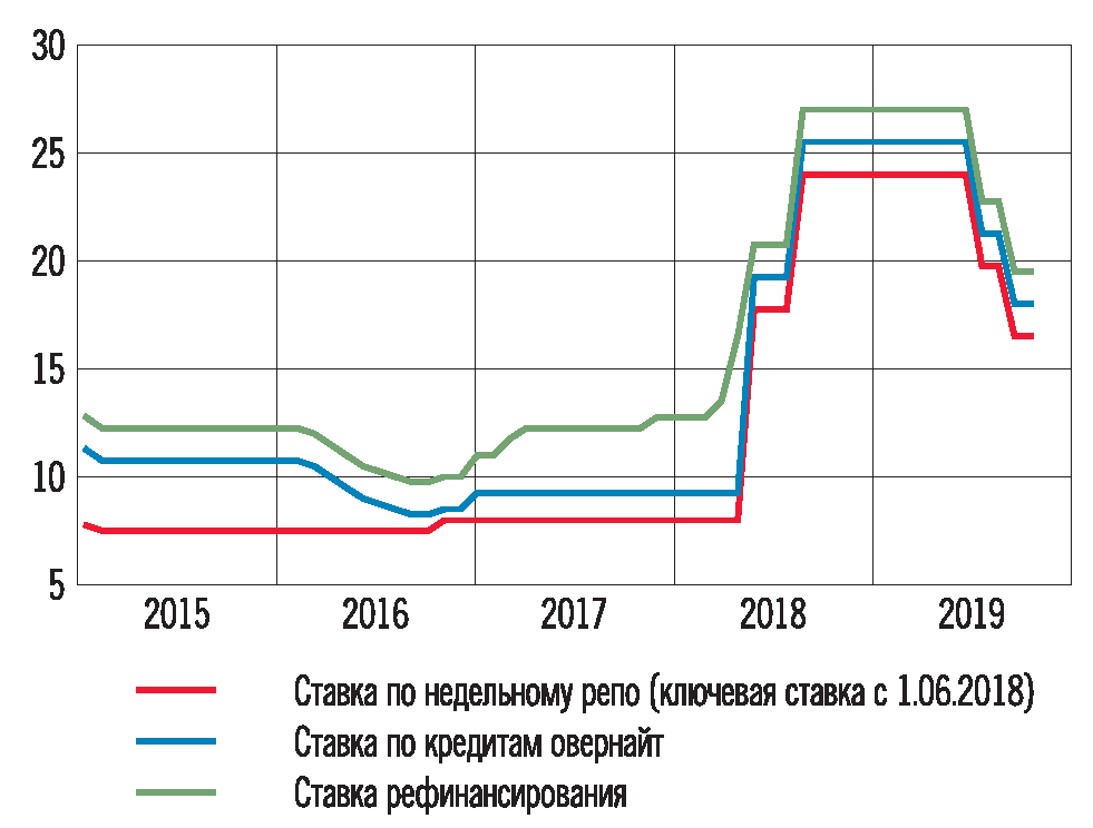 Основной инструмент денежно-кредитной политики Банка России. Ставка устанавливается Советом директоров Банка России восемь раз в год. Изменение ключевой ставки оказывает влияние на кредитную и экономическую активность и в конечном итоге позволяет достигать основной цели денежно-кредитной политики. Соответствует минимальной процентной ставке на аукционах репо Банка России на срок 1 неделя и максимальной процентной ставке на депозитных аукционах Банка России на срок 1 неделя.