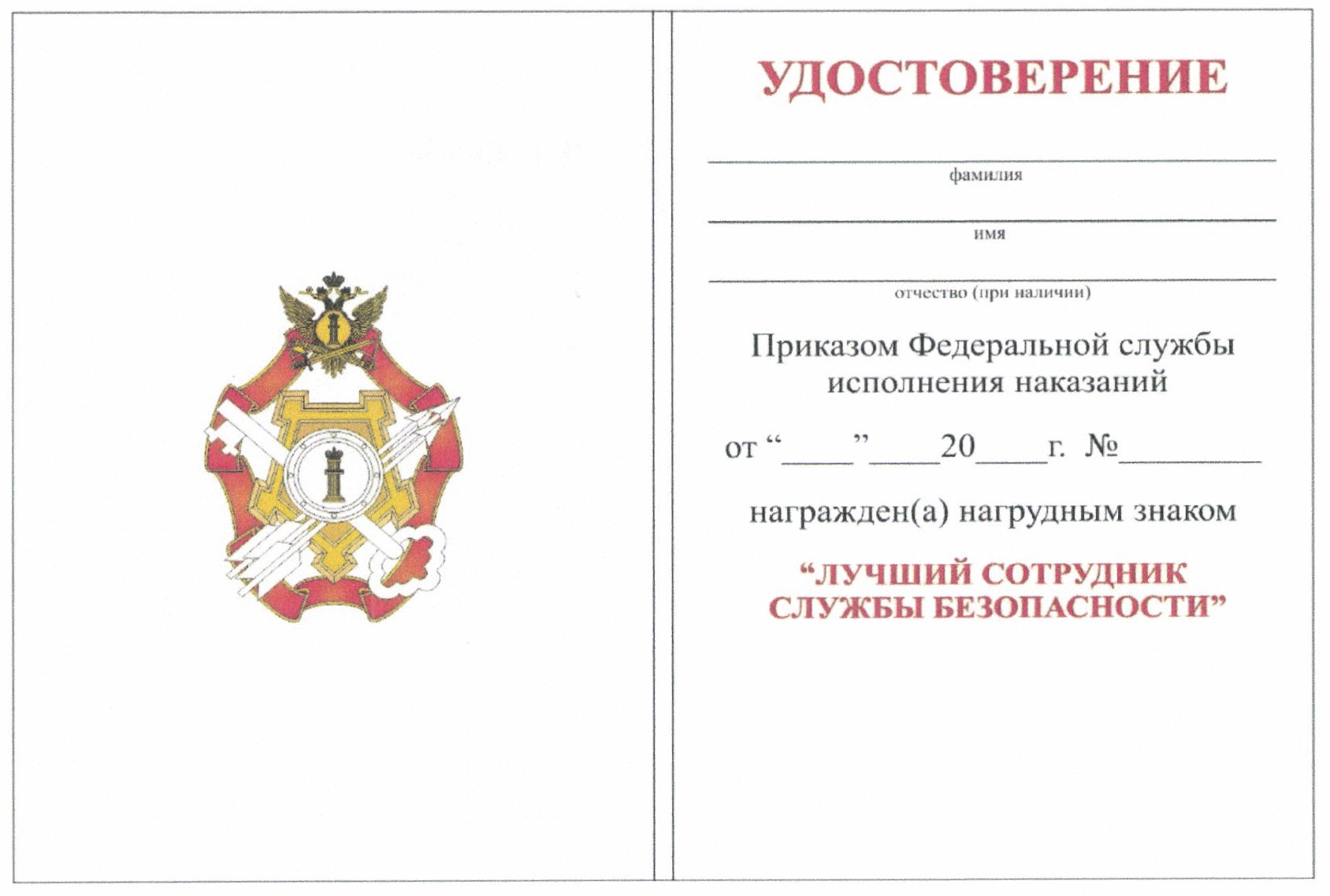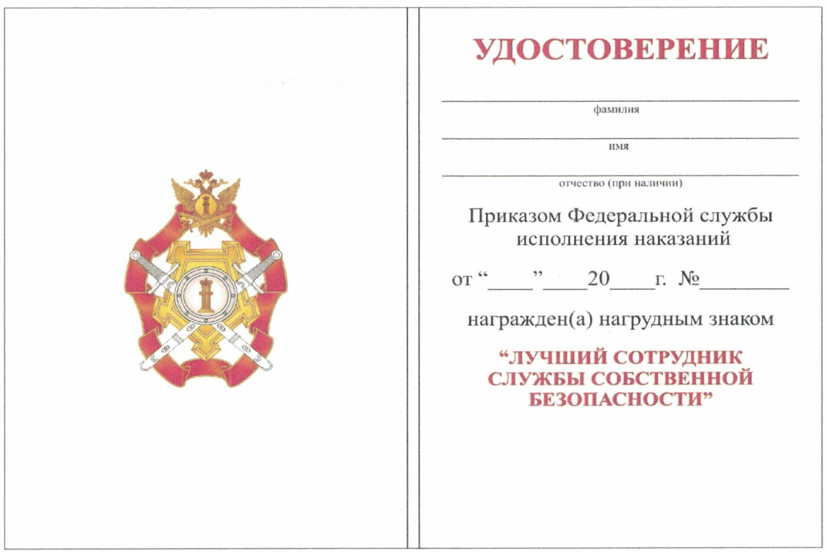 1. Нагрудный знак "Лучший сотрудник службы собственной безопасности" является ведомственной наградой ФСИН России. Описание, рисунок и рекомендуемый образец бланка удостоверения к нагрудному знаку "Лучший сотрудник службы собственной безопасности" даны в приложениях № 1 - 3 к настоящему Положению.