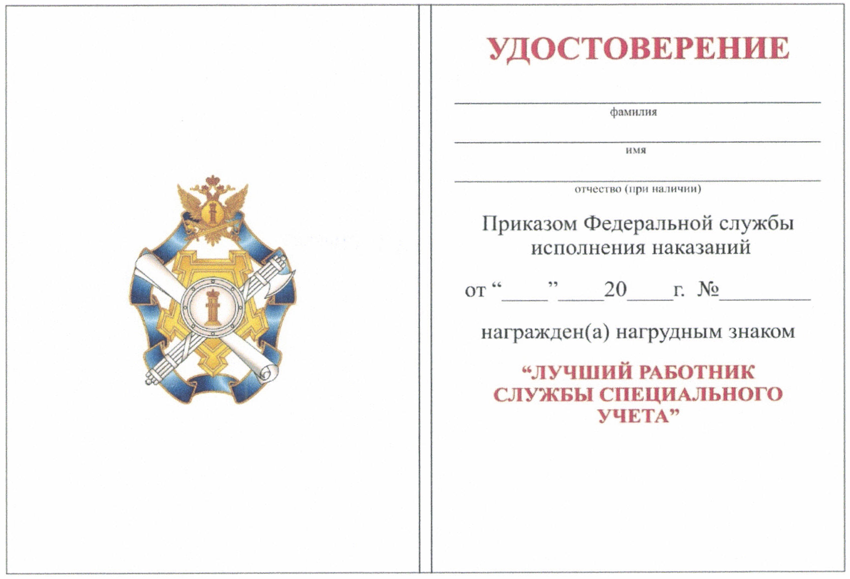 1. Нагрудный знак "Лучший работник службы специального учета" является ведомственной наградой ФСИН России. Описание, рисунок и рекомендуемый образец бланка удостоверения к нагрудному знаку "Лучший работник службы специального учета" приведены в приложениях № 1 - 3 к настоящему Положению.