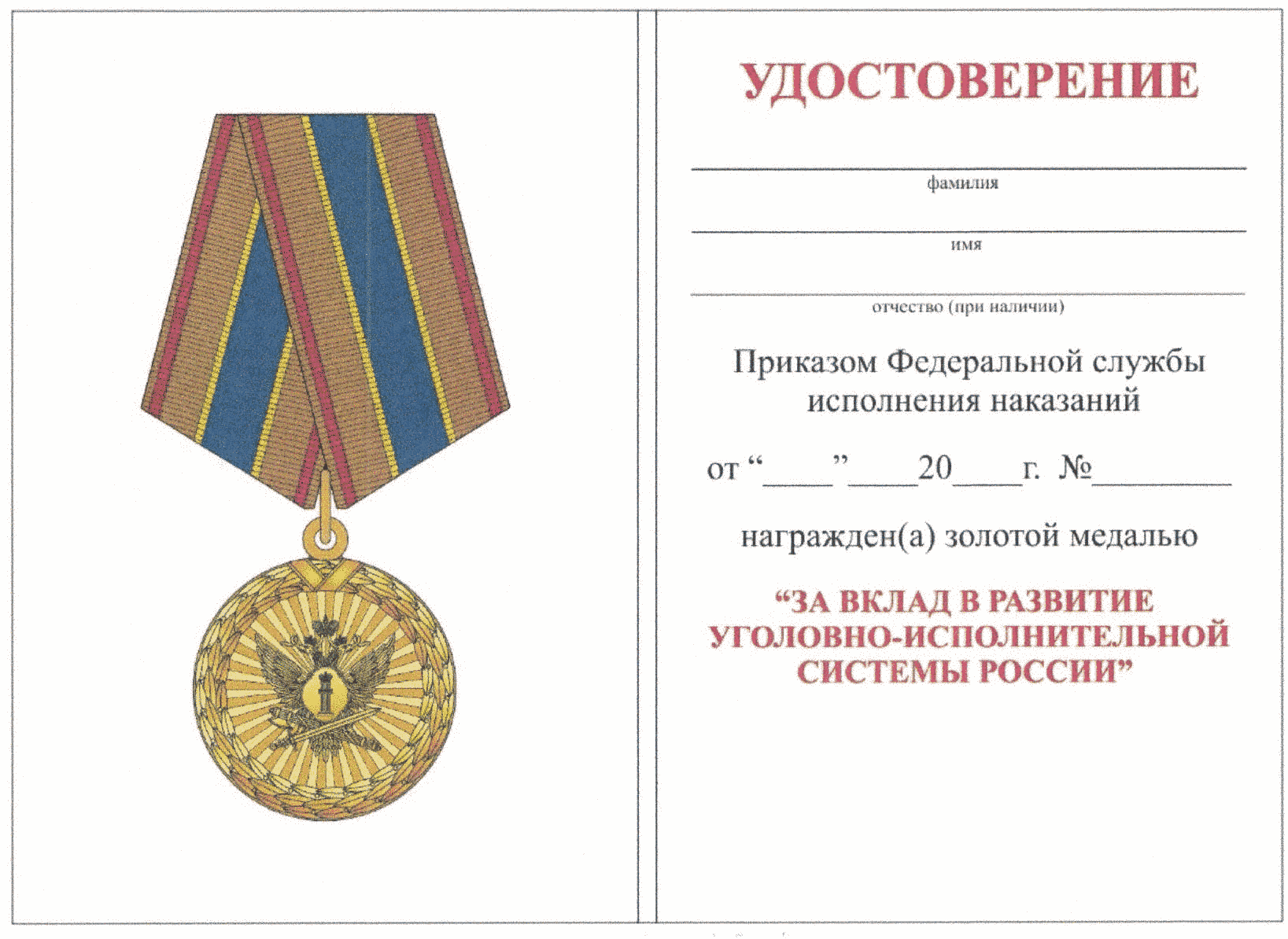 золотую медаль "За вклад в развитие уголовно-исполнительной системы России";