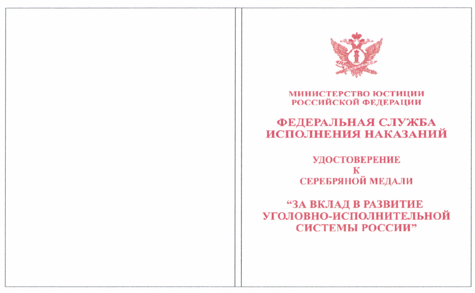 серебряную медаль "За вклад в развитие уголовно-исполнительной системы России";
