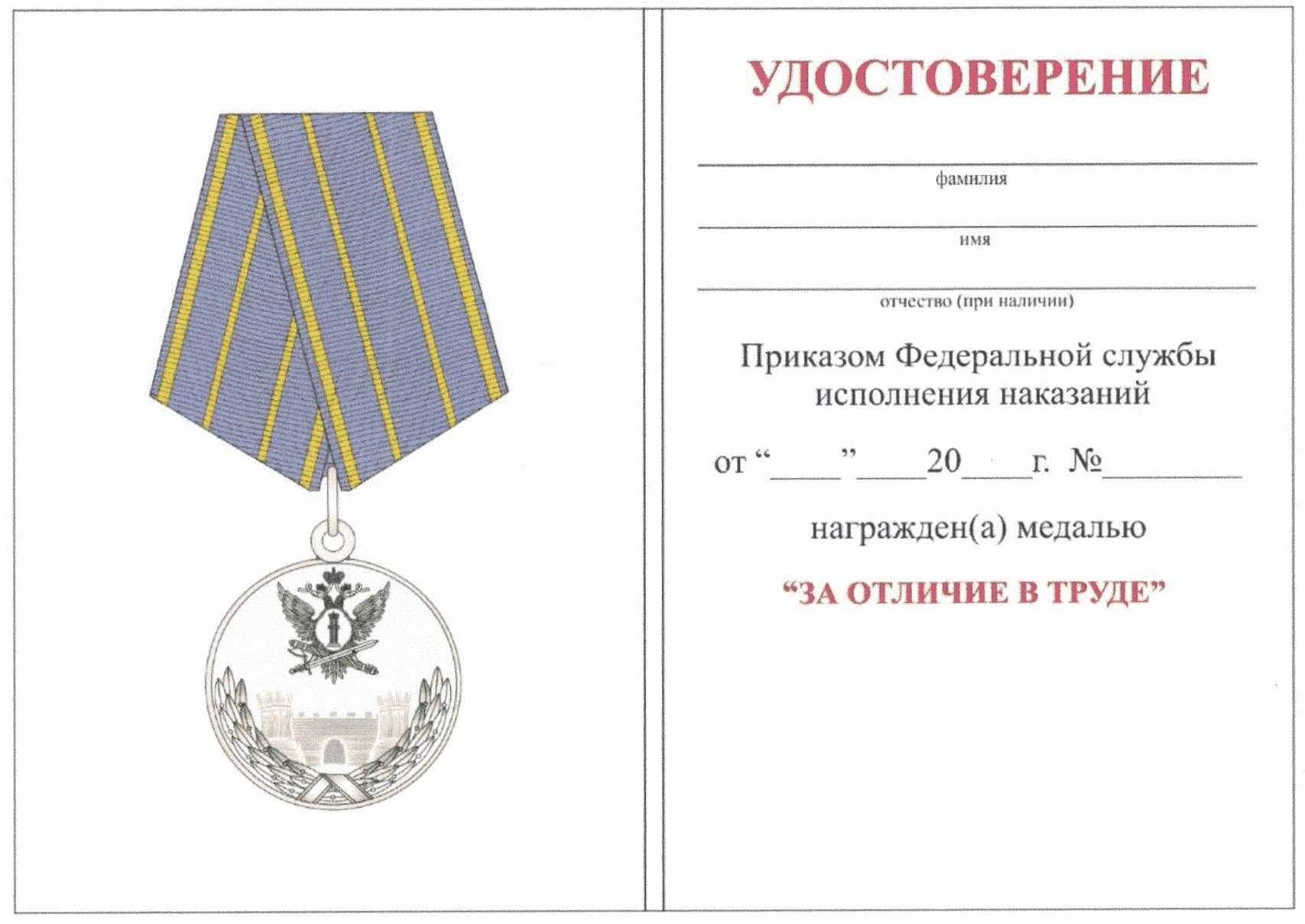 4. Предоставить право подписи бланка удостоверения к медали "Ветеран уголовно-исполнительной системы России" и "За отличие в службе" с указанием даты и номера приказа ФСИН России начальникам территориальных органов ФСИН России и образовательных организаций ФСИН России.