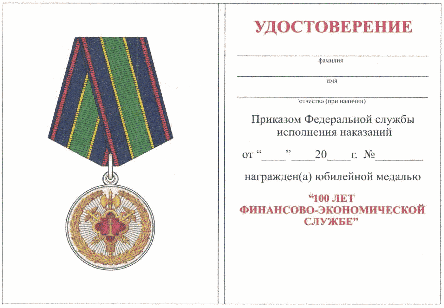 юбилейная медаль "100 лет уголовно-исполнительным инспекциям";