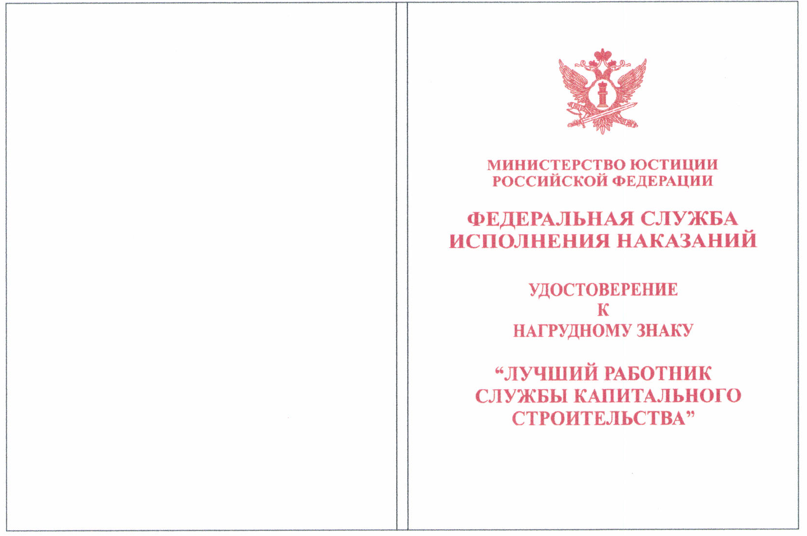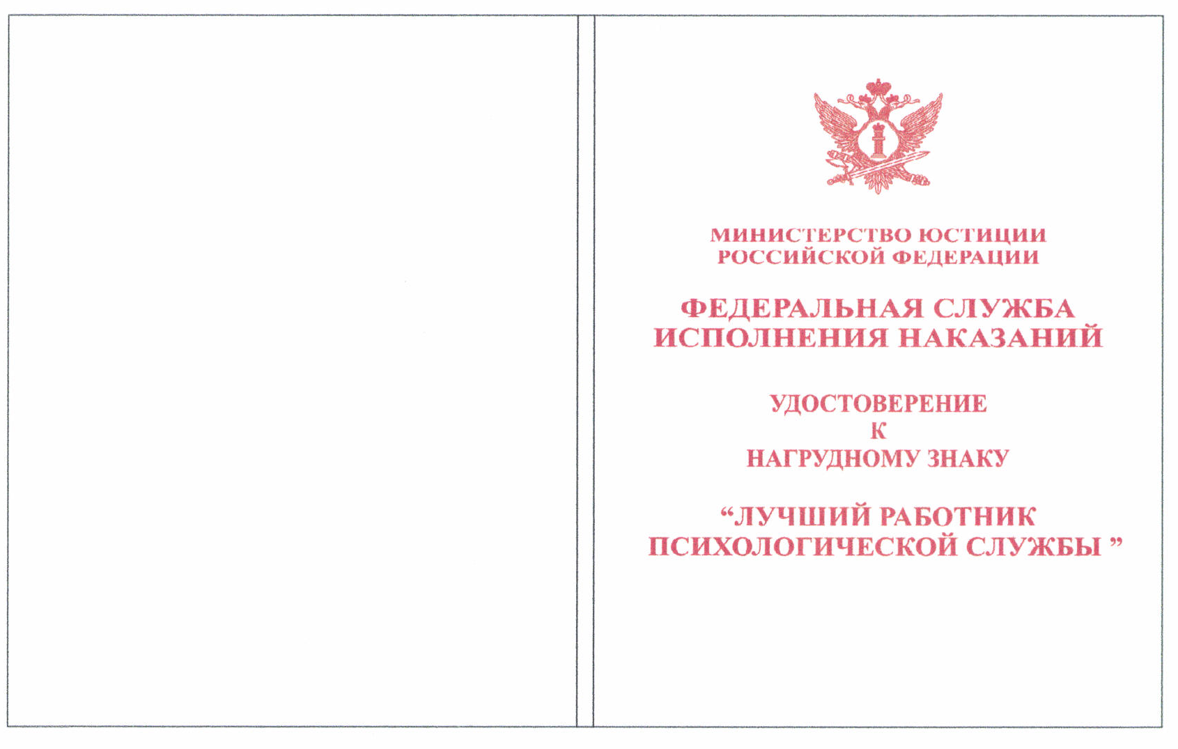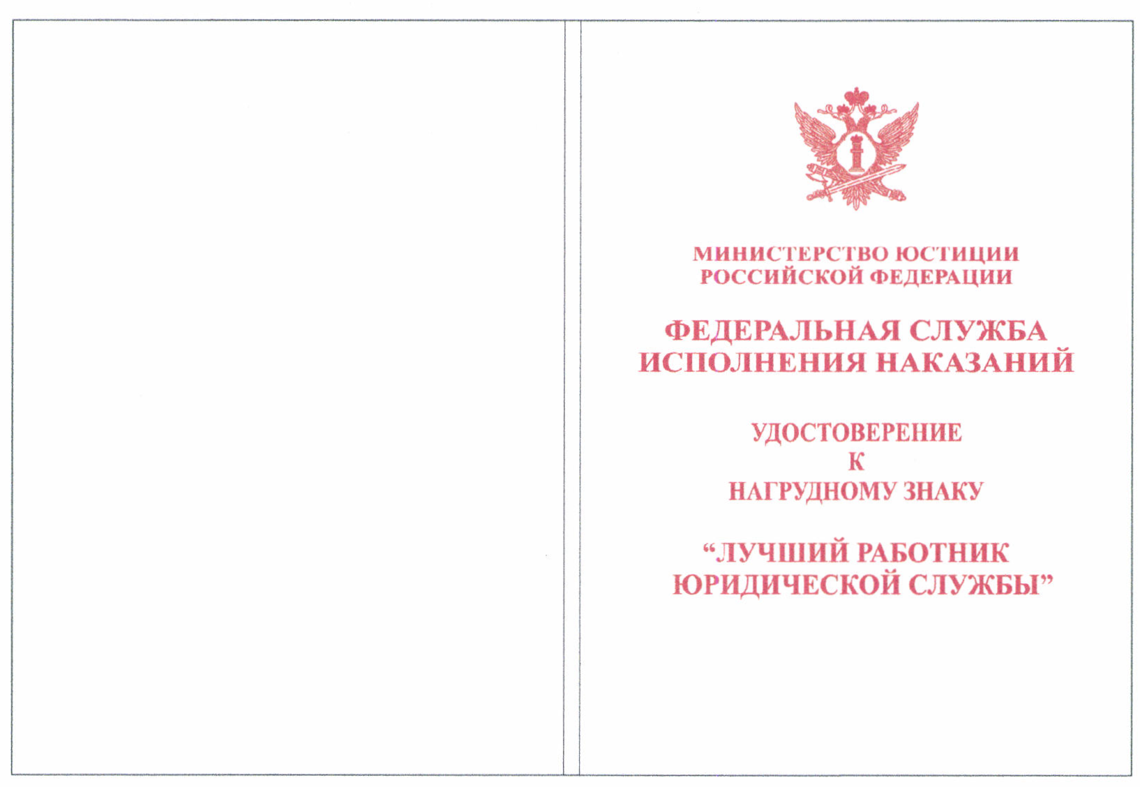 Почетная грамота Федеральной службы исполнения наказаний.
