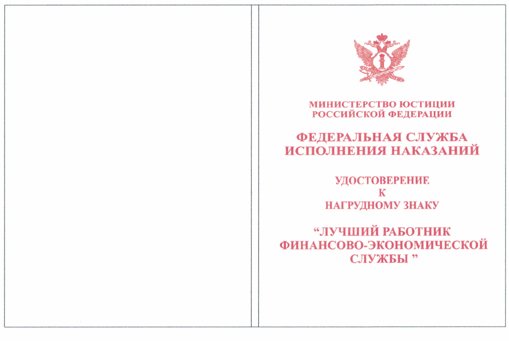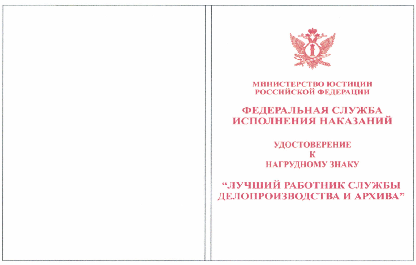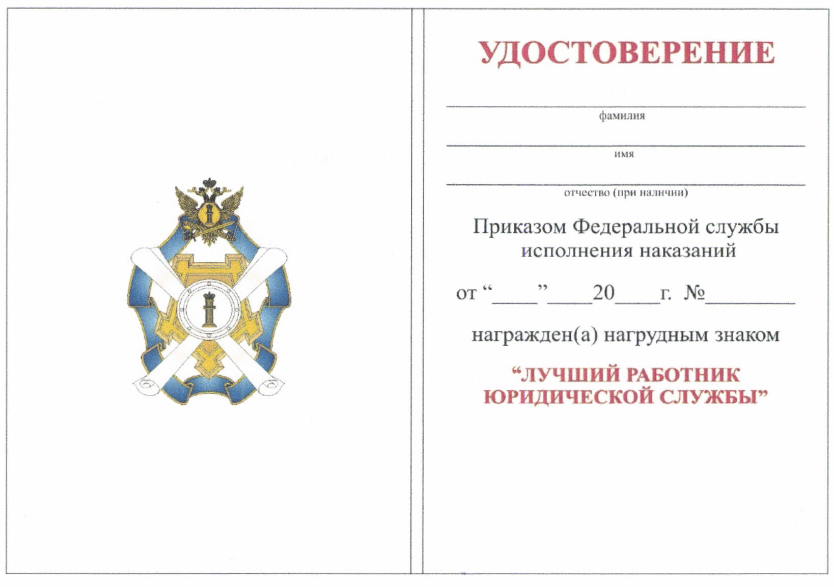 Почетная грамота Федеральной службы исполнения наказаний.