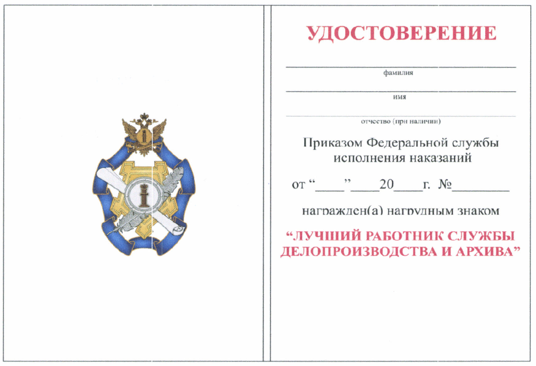 1. Нагрудный знак "Лучший работник подразделений по защите государственной тайны" является ведомственной наградой ФСИН России. Описание, рисунок и рекомендуемый образец бланка удостоверения к нагрудному знаку "Лучший работник подразделений по защите государственной тайны" даны в приложениях № 1 - 3 к настоящему Положению.