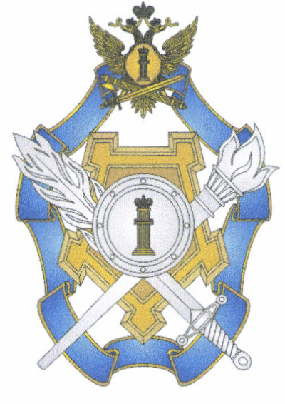 Лента, крепость, двуглавый орел, перекрещенные меч в ножнах и факел, щит и "столп Закона" располагаются в разных плоскостях.