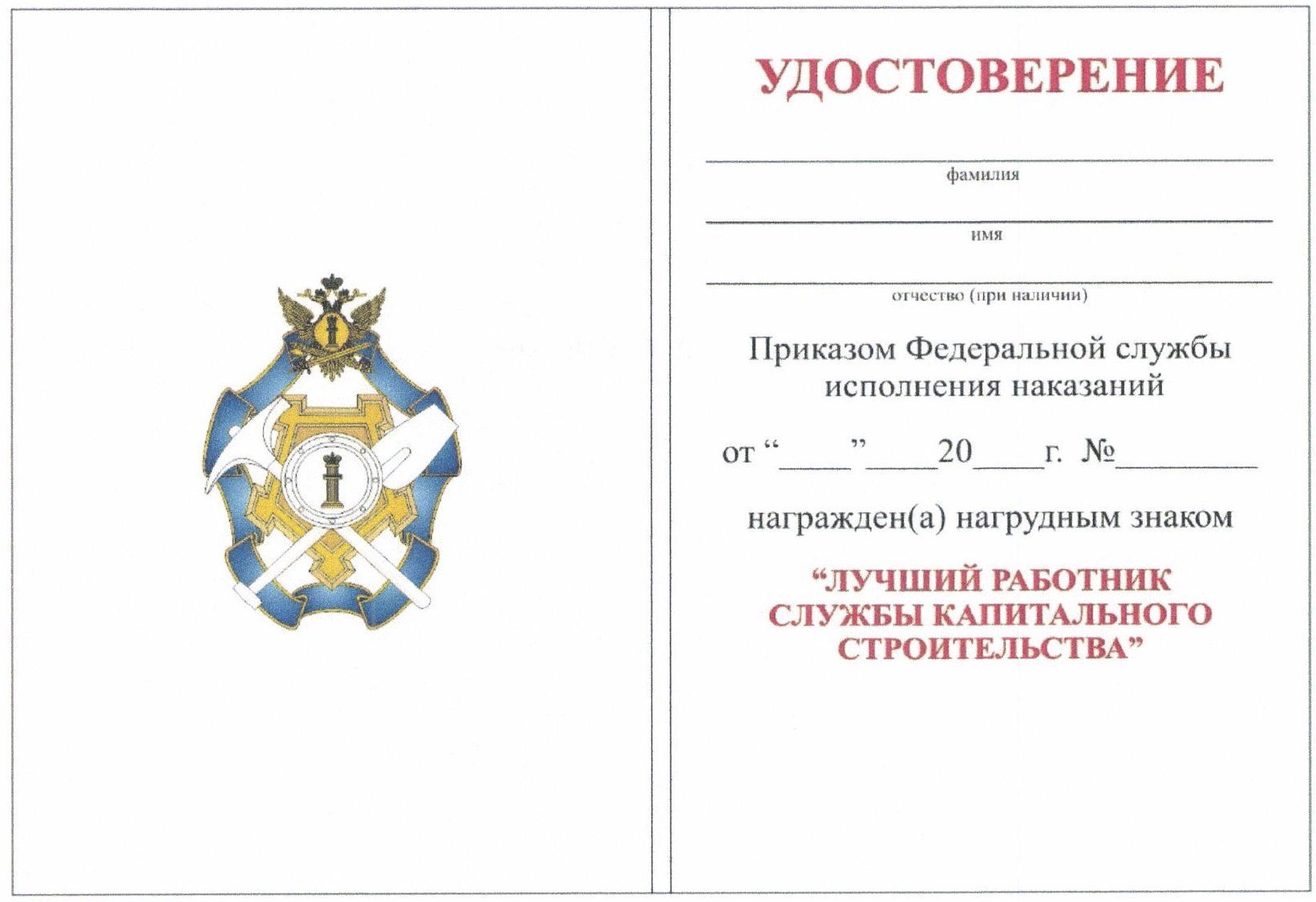1. Нагрудный знак "Лучший работник службы инженерно-технического обеспечения и вооружения" является ведомственной наградой ФСИН России. Описание, рисунок и рекомендуемый образец бланка удостоверения к нагрудному знаку "Лучший работник службы инженерно-технического обеспечения и вооружения" даны в приложениях № 1 - 3 к настоящему Положению.