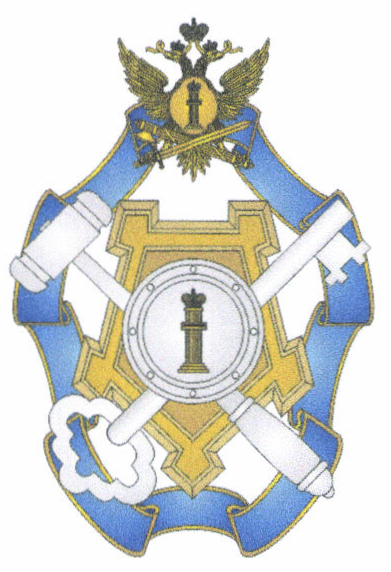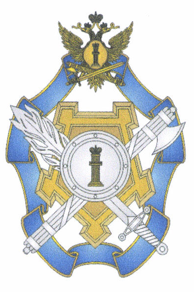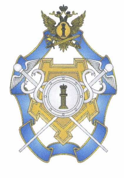Лента, крепость, двуглавый орел, перекрещенные кадуцей и факел, щит и "столп Закона" располагаются в разных плоскостях.